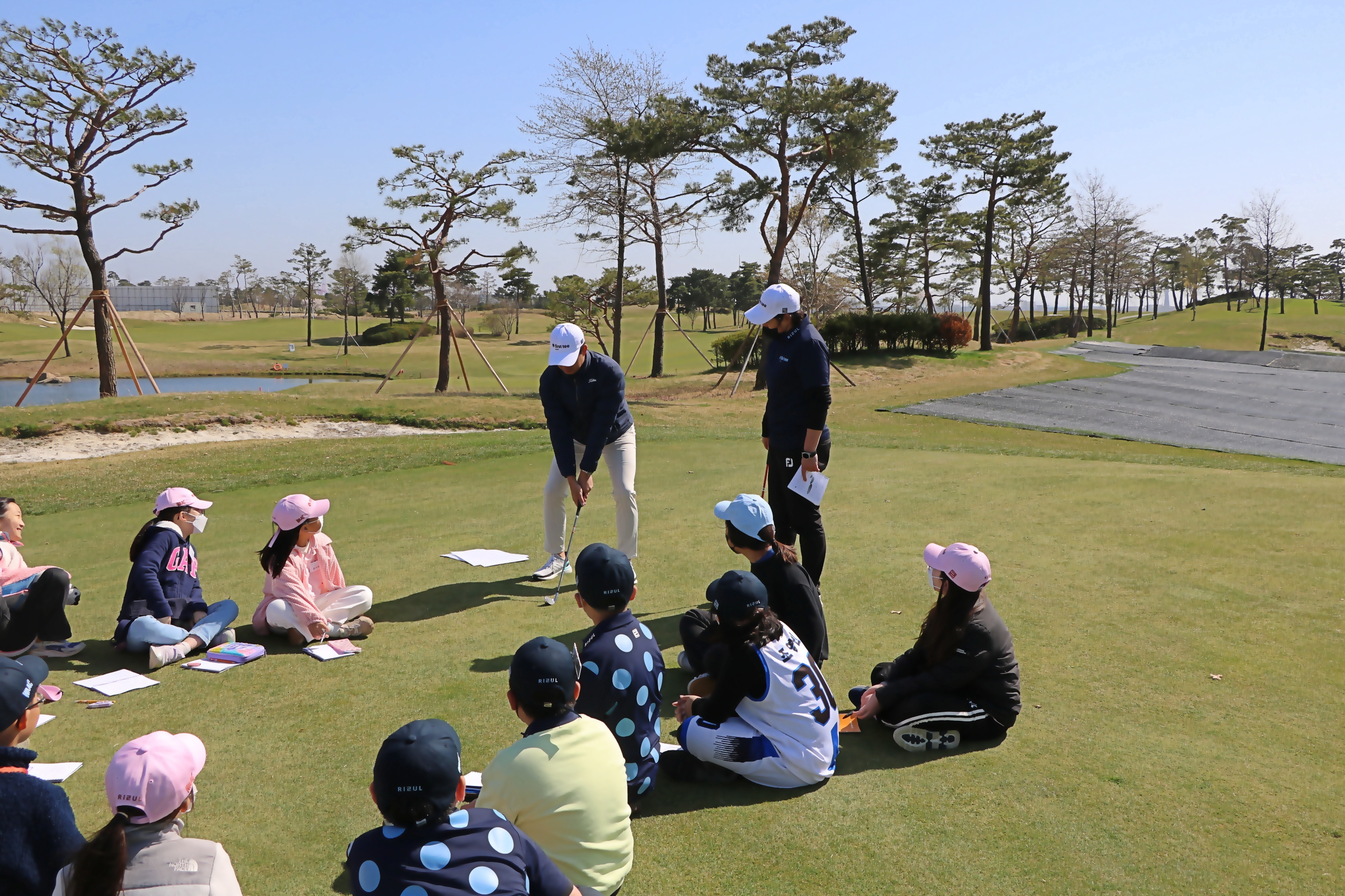 올바른 어드레스 동작에 대해서 설명해 주고 있는 데이비드 오 프로