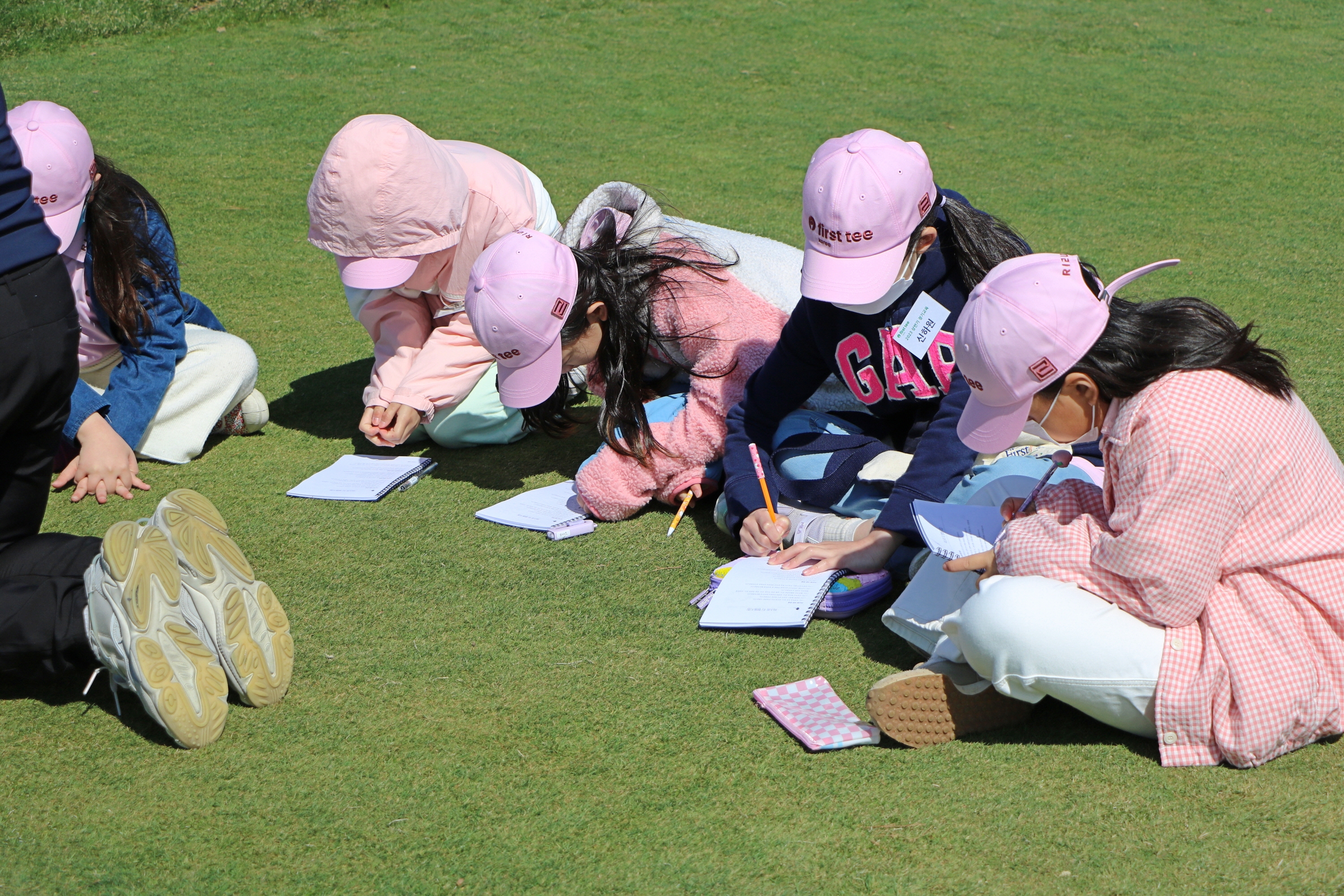 코치님과 함께 야디지북의 문제를 해결하고 있는 아이들