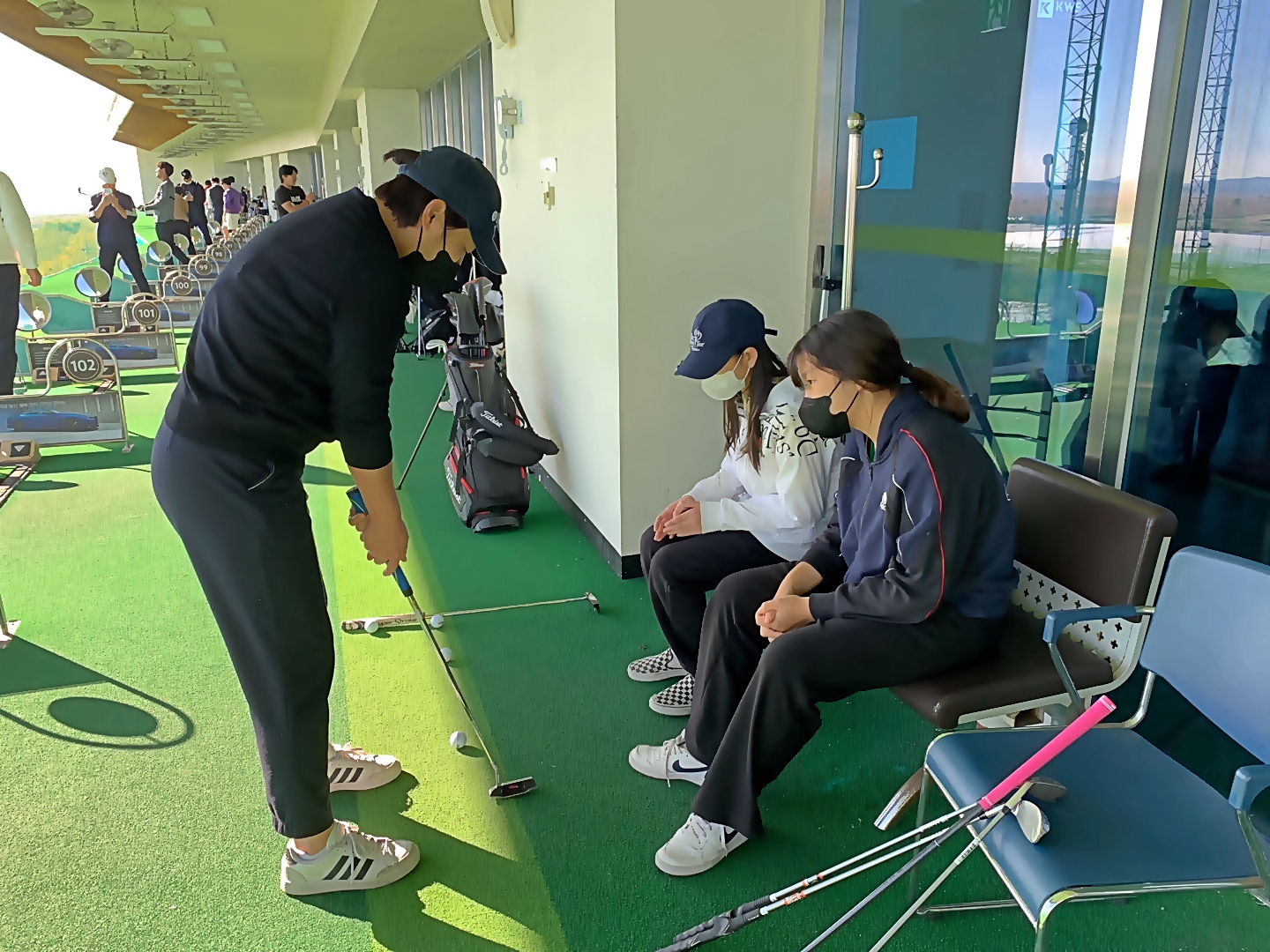 파레벨 아이들을 대상으로 퍼팅 원포인트 레슨을 해주고 있는 모습