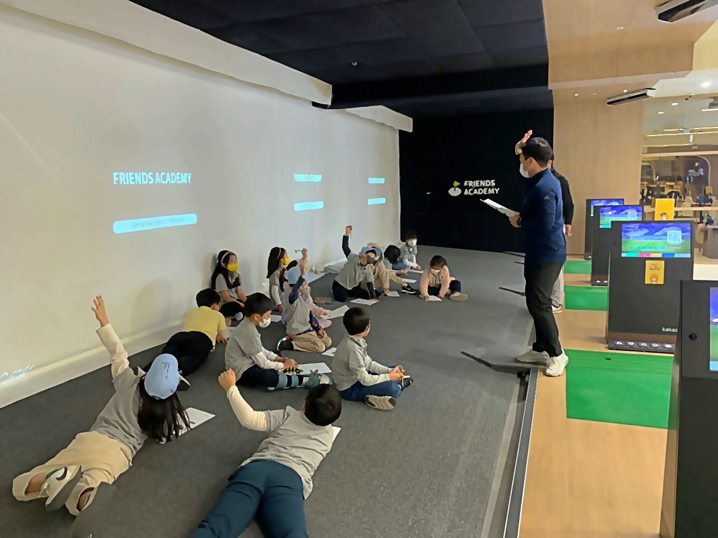 10주차 종합평가를 앞두고 코치님과 함께 예상문제 풀이를 하고 있는 아이들