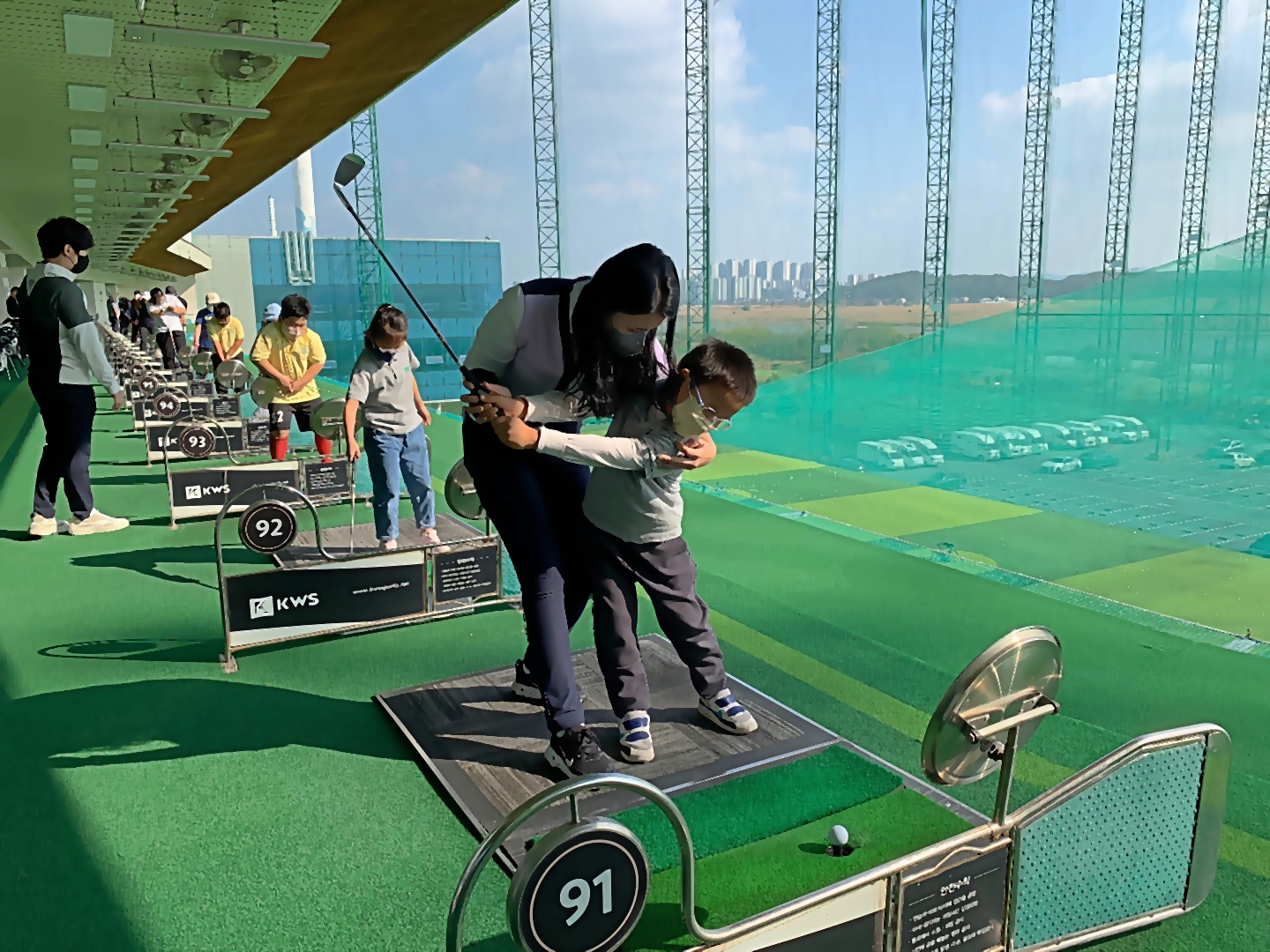 반복적인 1:1 레슨을 통해 아이들의 스윙을 완성시켜가고 있는 모습