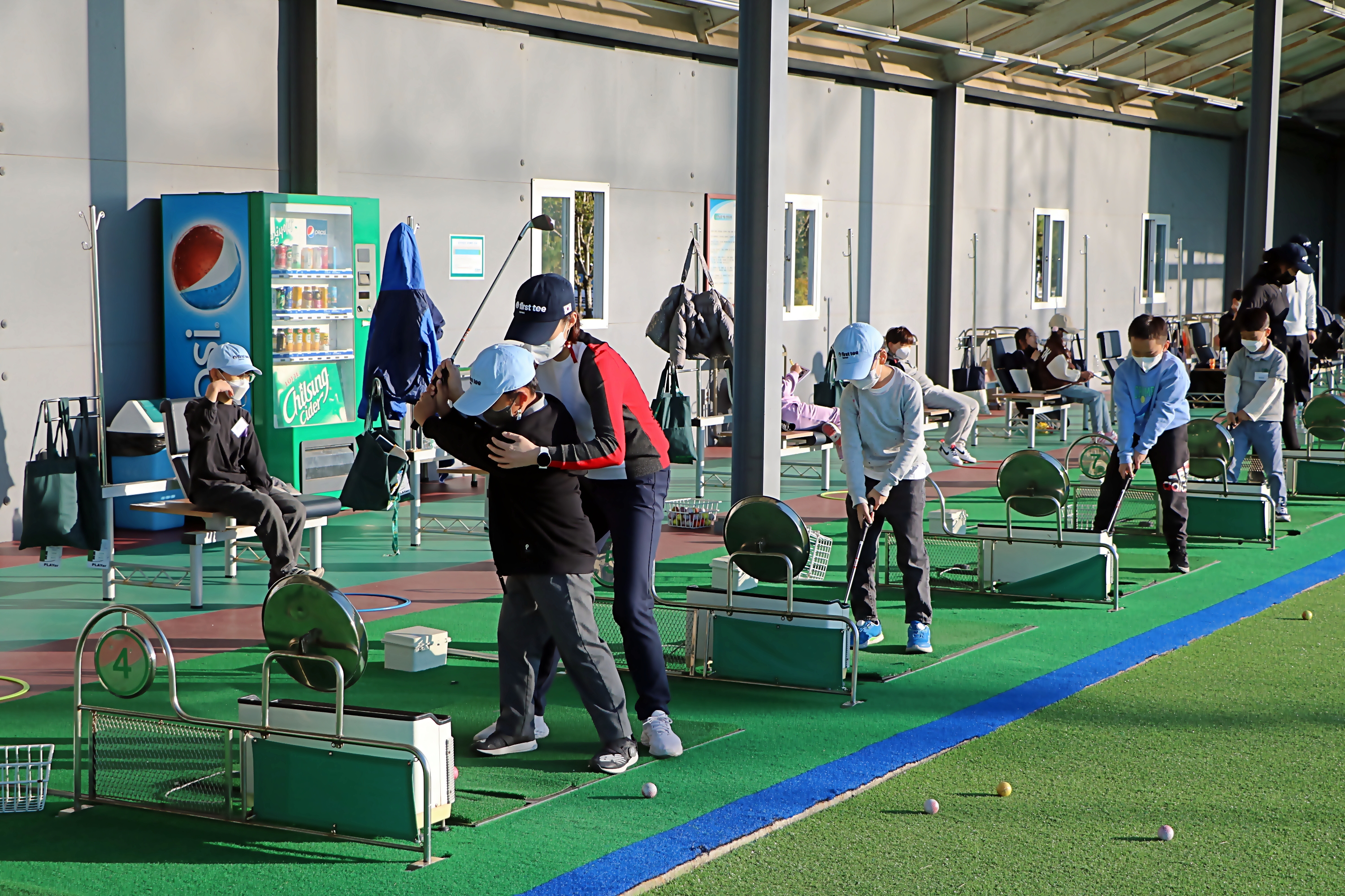 개인별로 실력에 맞게 스윙을 하며 이를 돌아가면서 교정해 주고 있는 모습