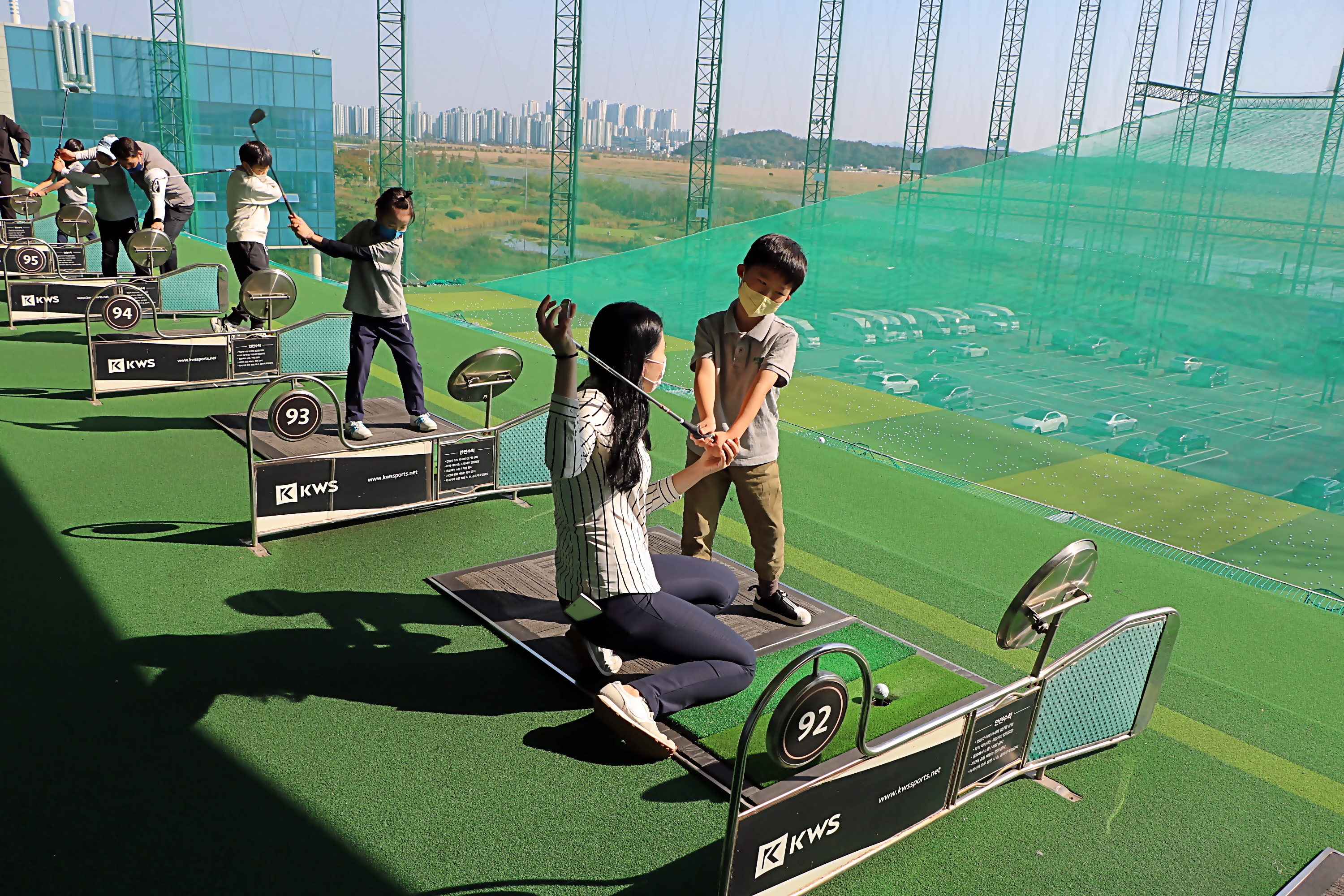 백스윙시 클럽 헤드의 모양에 대해서 설명해 주고 있는 모습