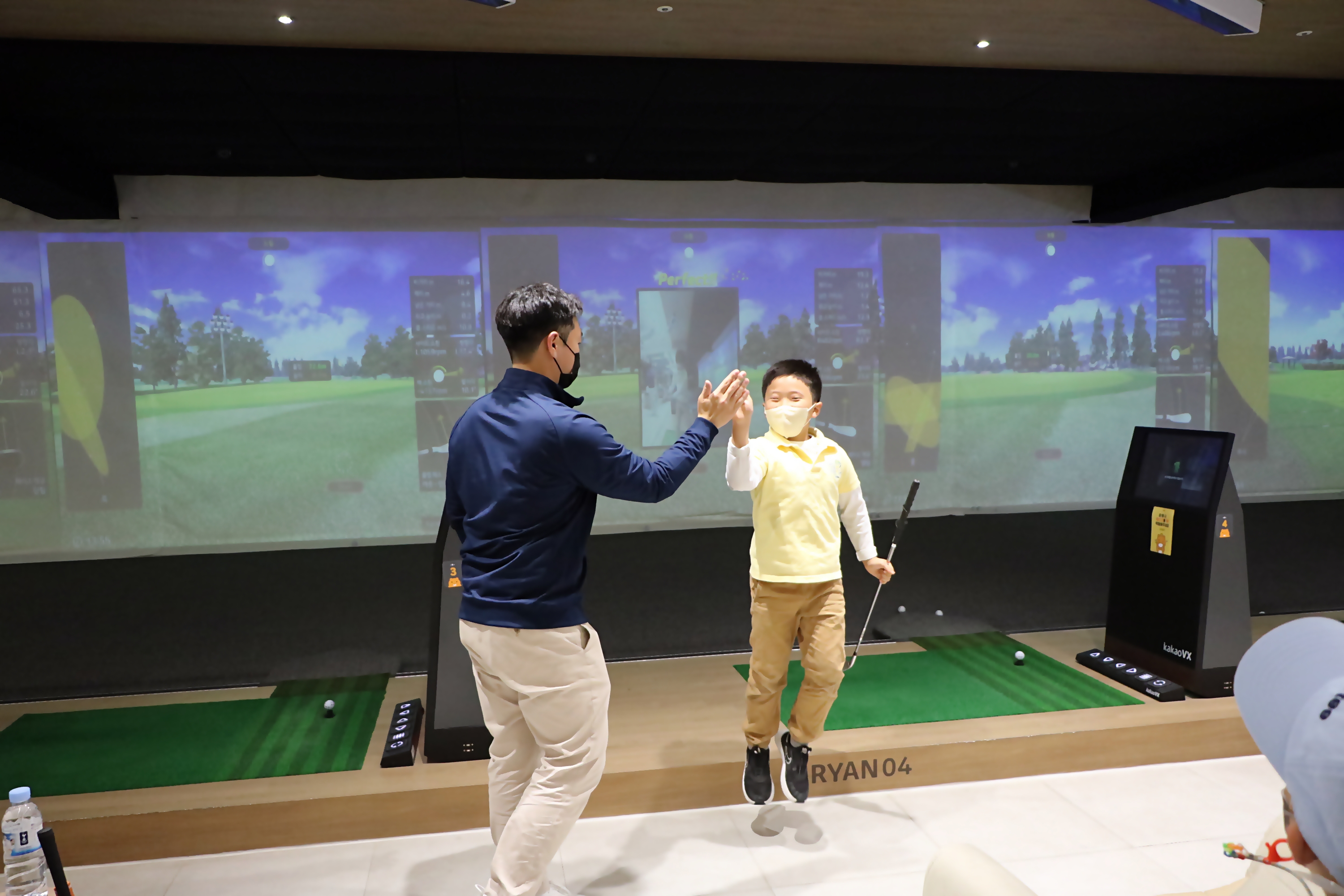 퍼펙트 기록 후 코치님과 함께 하이파이브를 하며 기뻐하는 모습