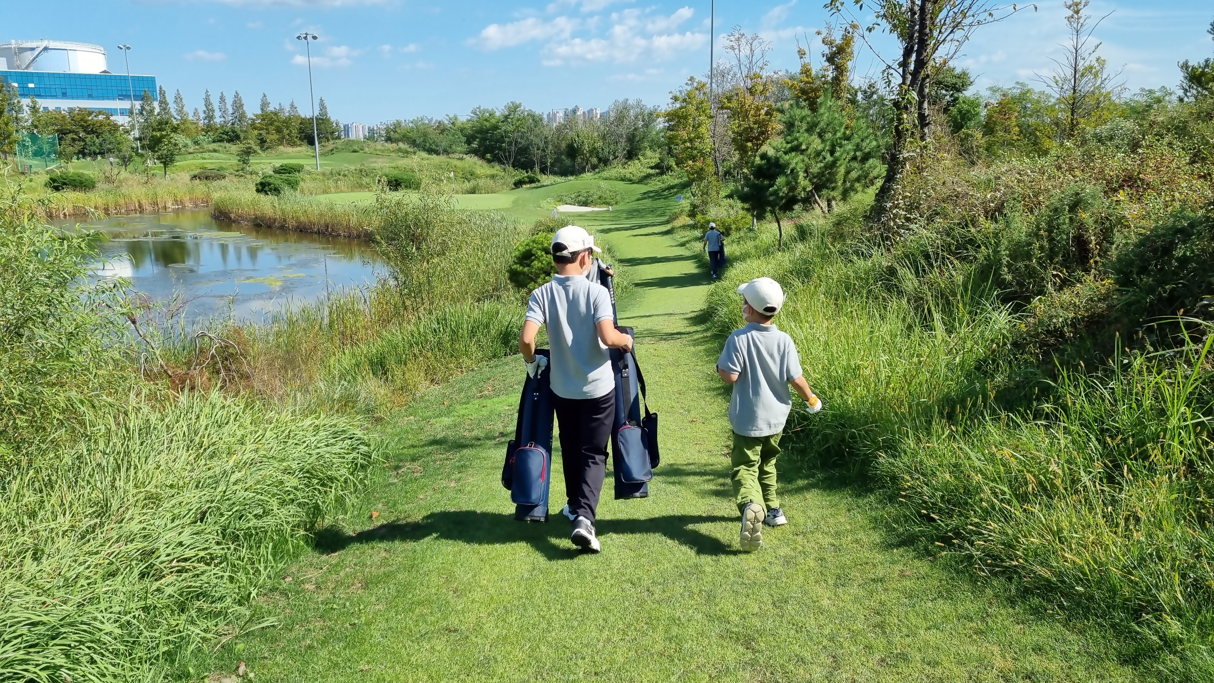 같은 조에 있는 자신보다 나이 어린 교육생의 골프백을 대신 들어주며 배려를 실천하는 모습