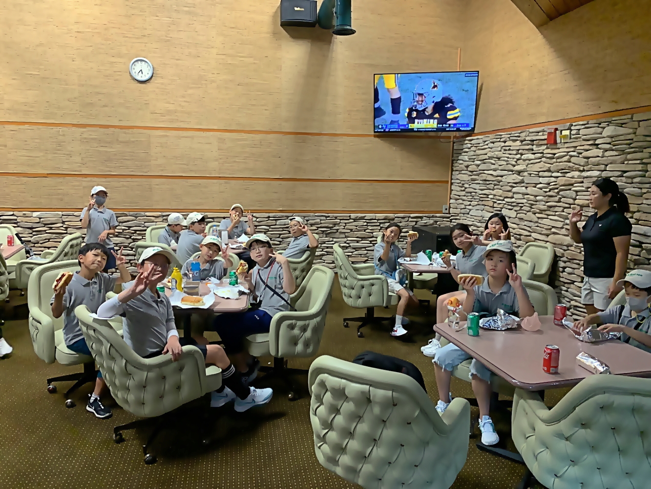 라운드 후 미국 본토의 맛이 담긴 핫도그 파티