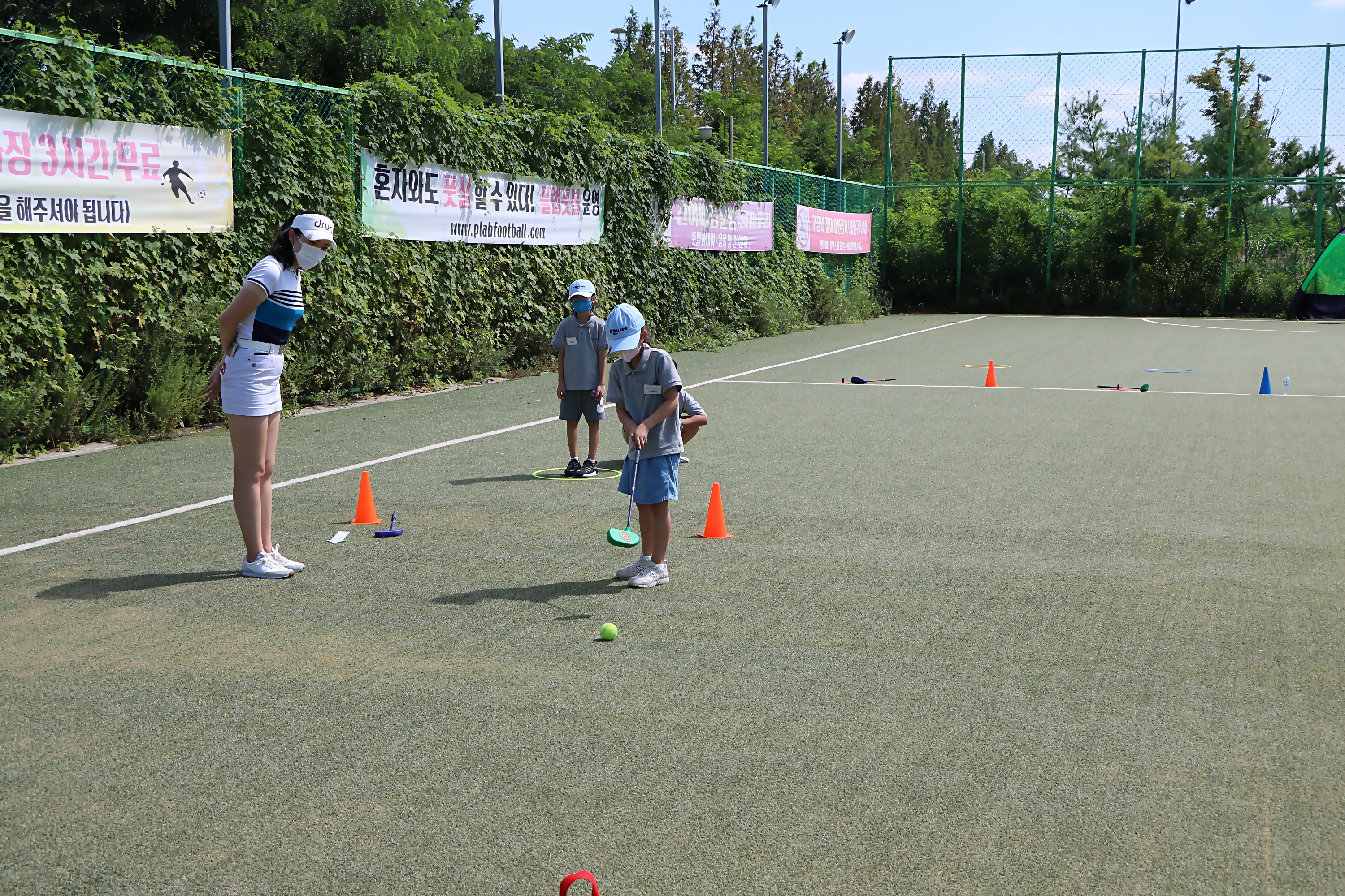 코치님의 지도에 따라 룰을 지키며 퍼팅게임을 하고 있는 모습