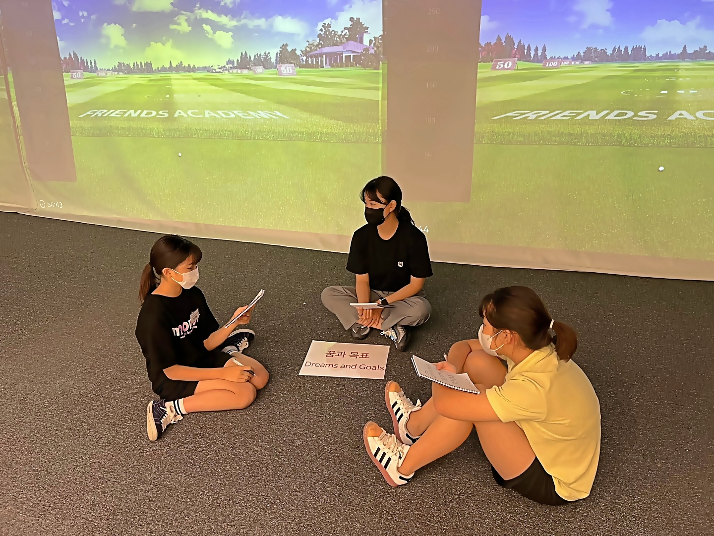꿈과 목표에 대해서 코치님과 이야기를 나누고 잇는 모습