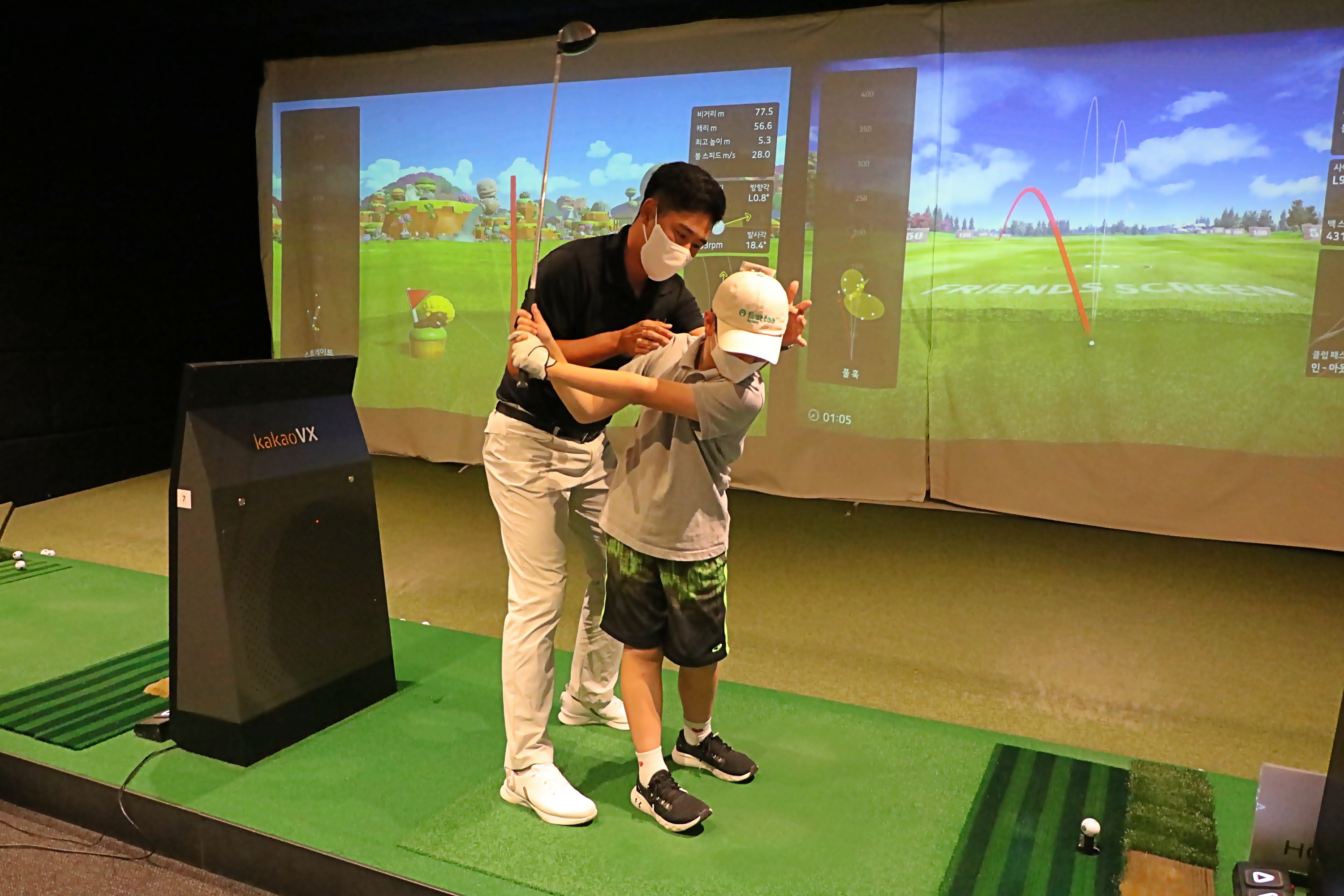 올바른 백스윙 자세를 지도해 주고 있는 모습