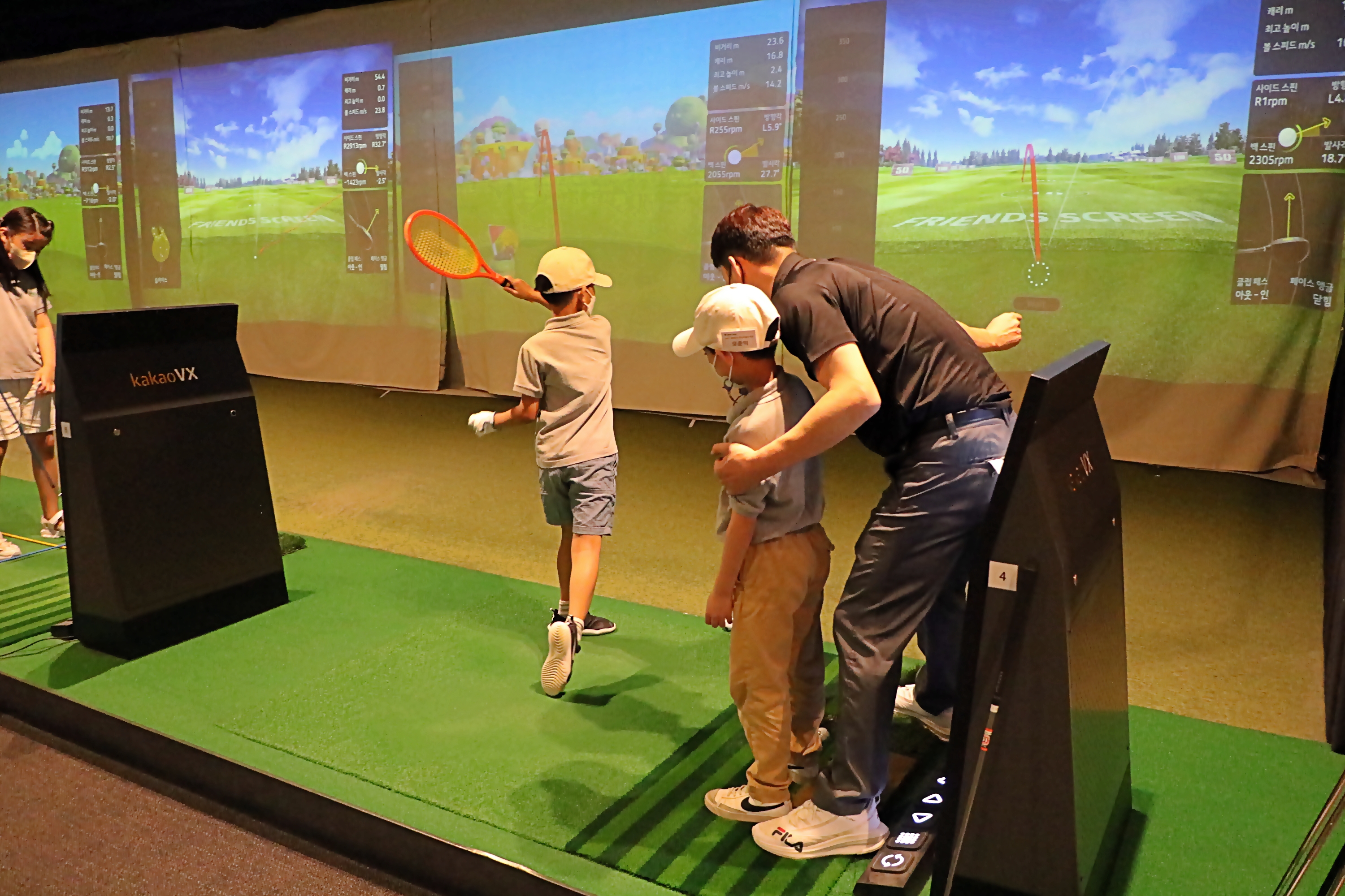 라켓을 이용해 손목 움직임에 대해서 설명해 주고 있는 모습