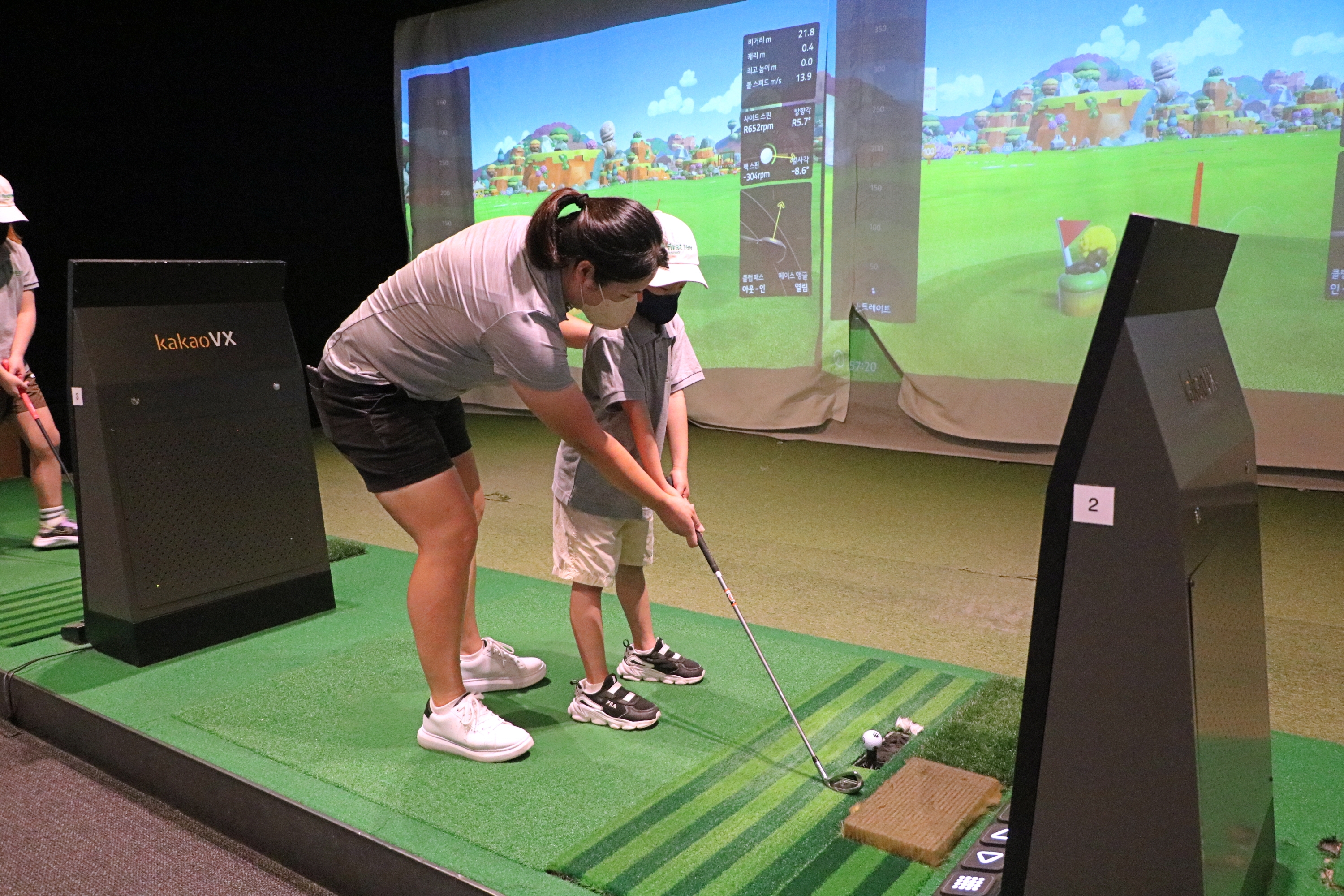 개인별로 어드레스 자세를 교정해 주고 있는 모습