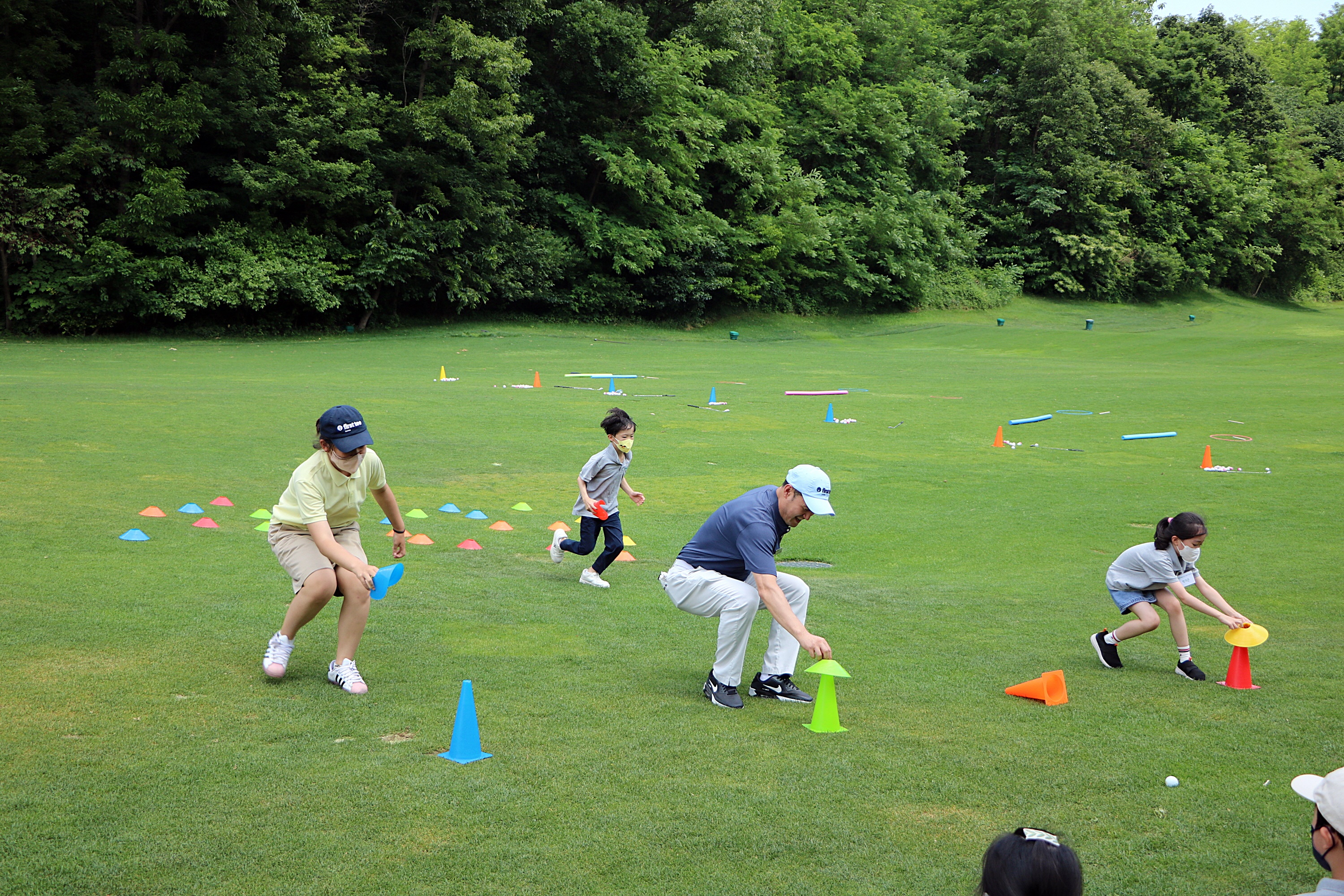 코치님과 함께 순발력 및 민첩성을 기르는 게임을 하고 있는 아이들