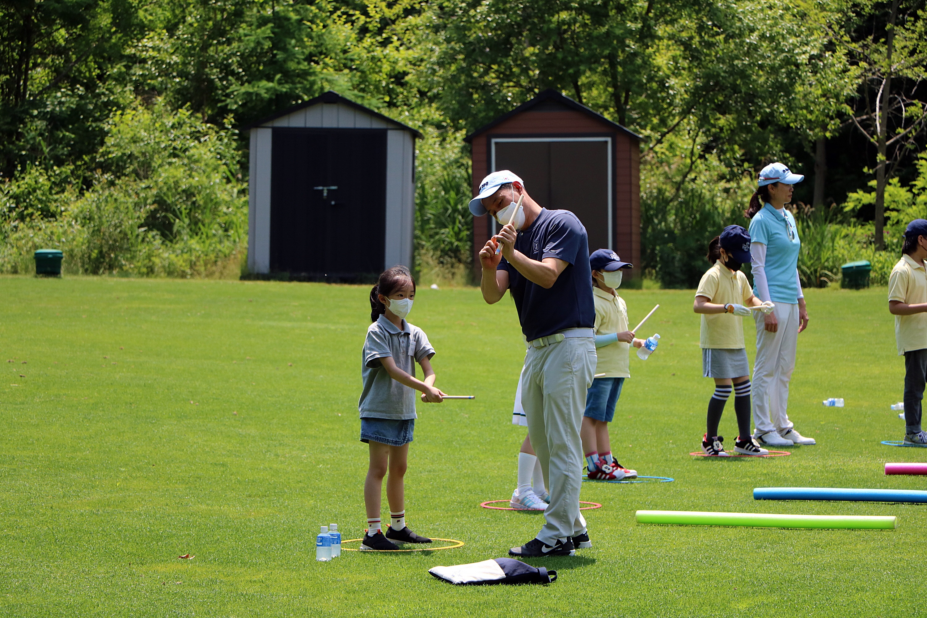 대기조 아이들에게 그립 잡는 법 등을 가르쳐 주고 있는 모습