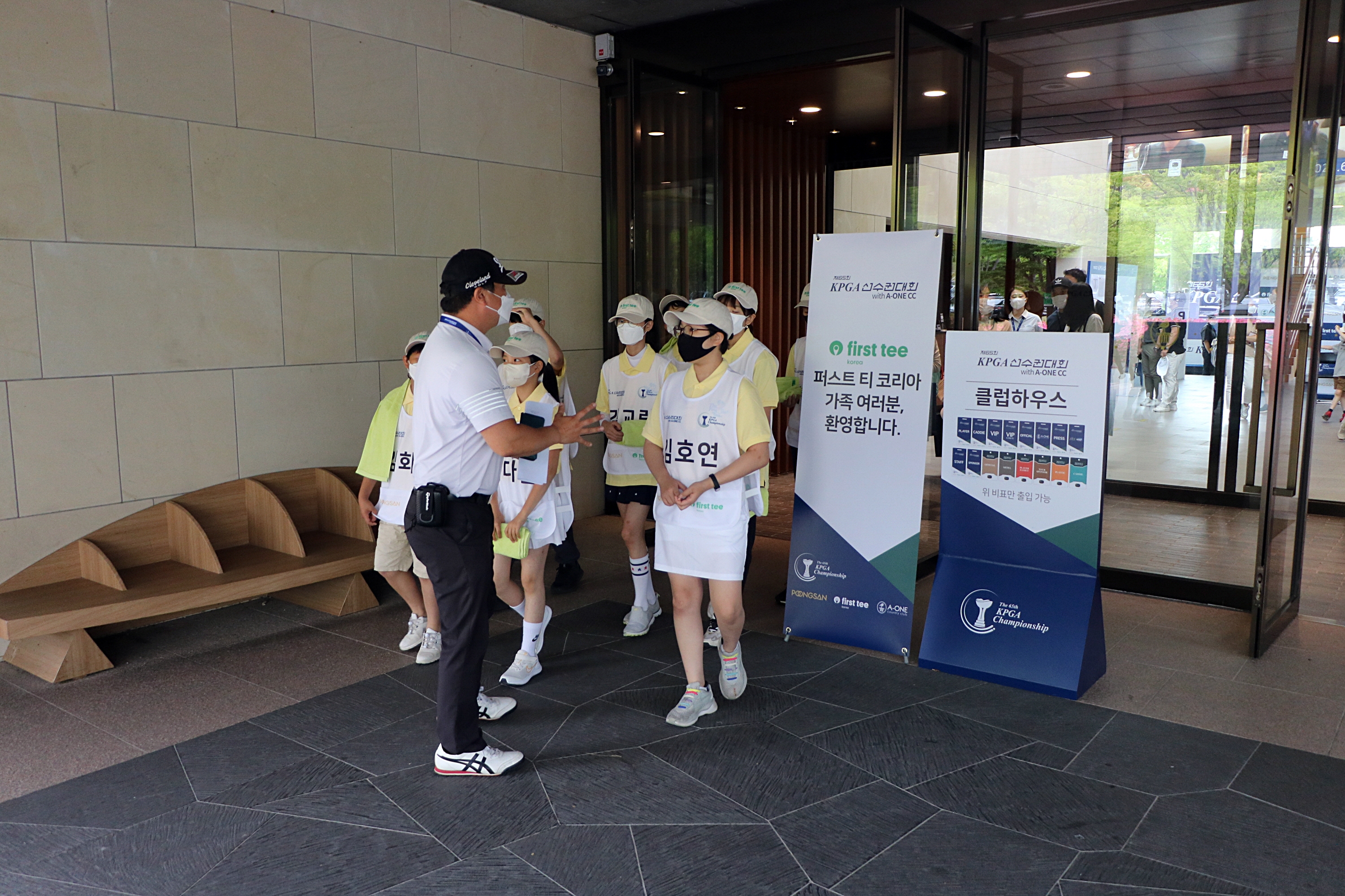 대회기간 동안 클럽하우스 입장 가능한 사람들에 관해 설명해주고 있는 모습