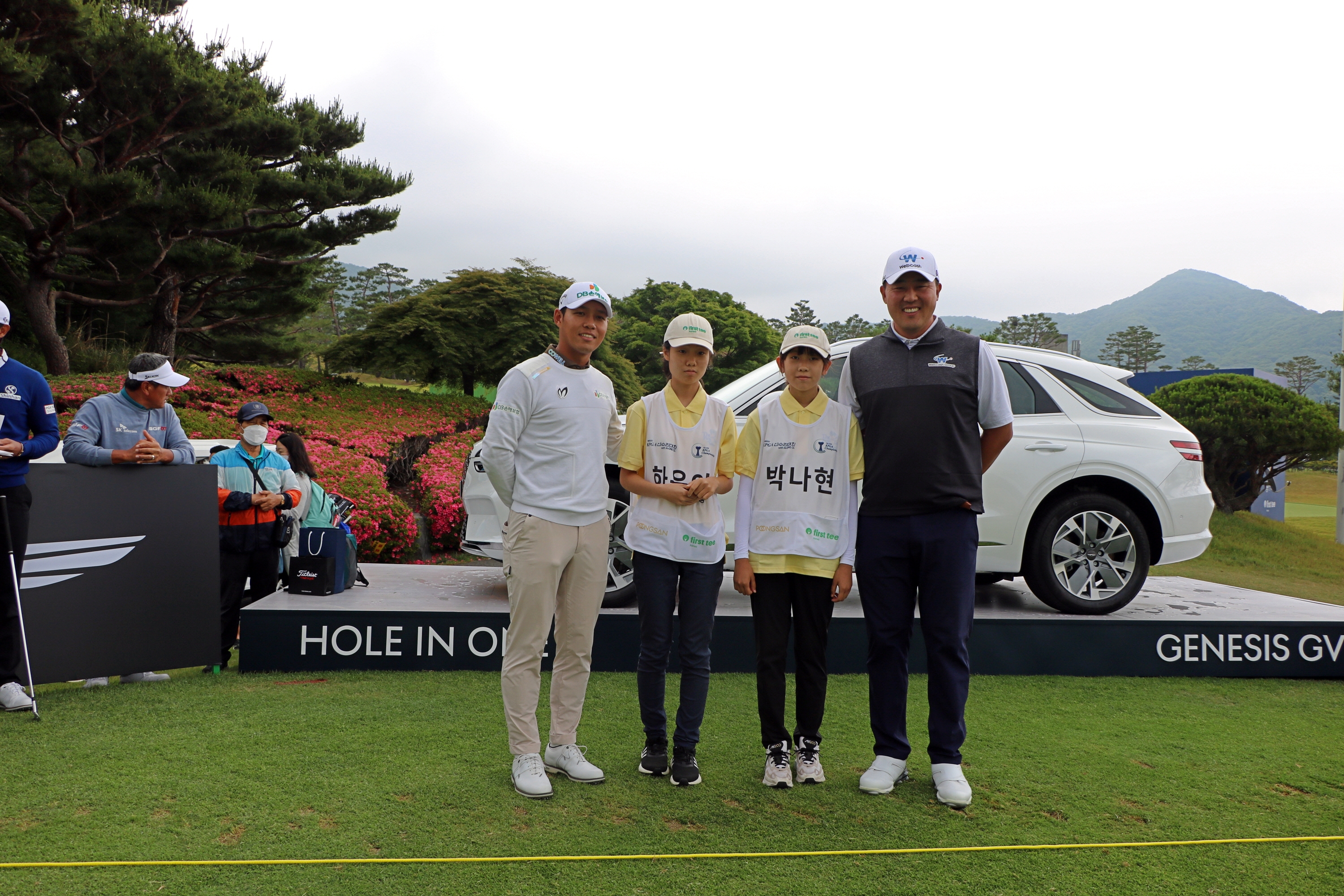 문도엽, 이원준 프로와 함께 티샷 전 기념사진을 찍은 모습