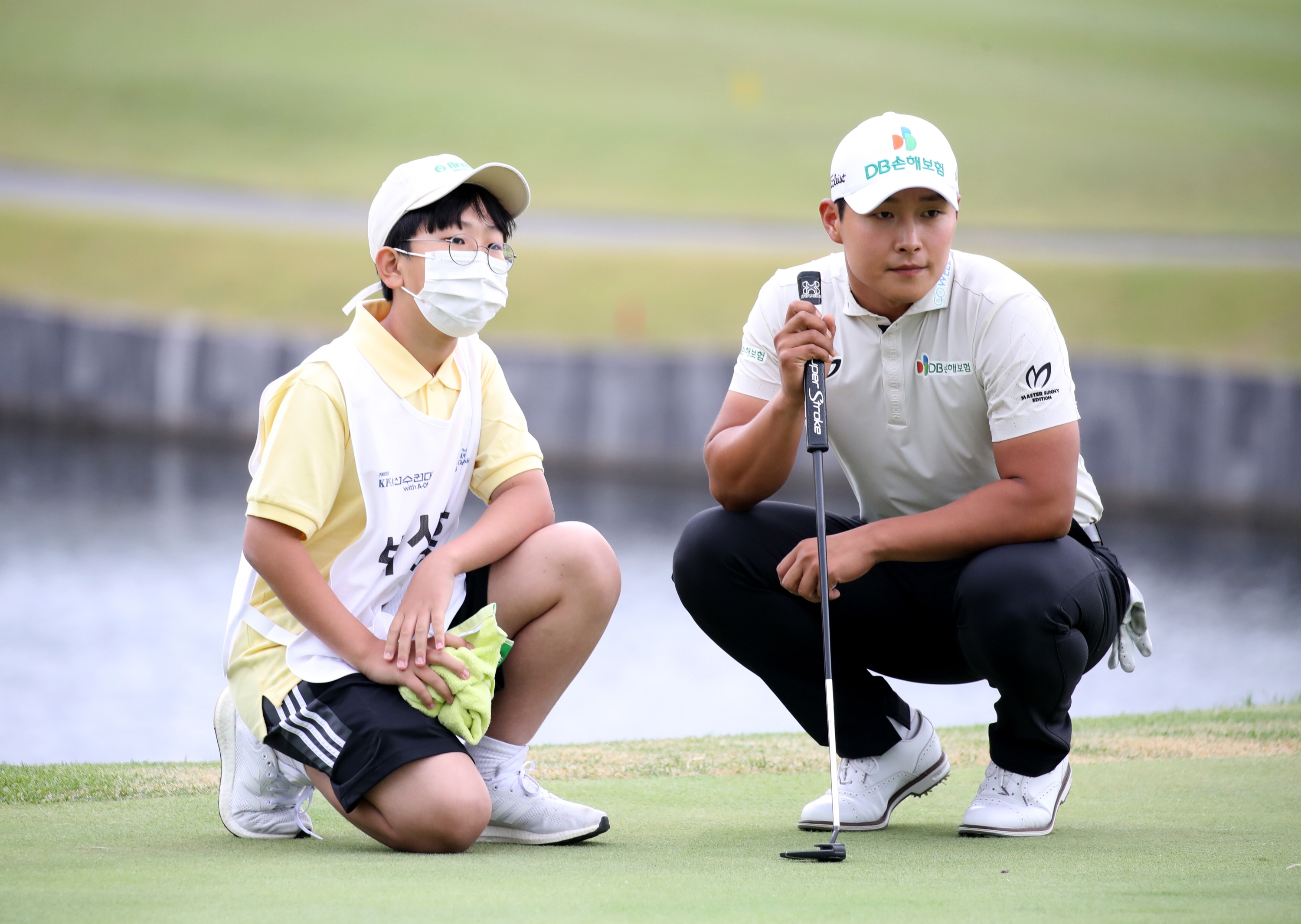 그린공략법에 대해서 서요섭 프로와 진지하게 이야기 나누고 있는 모습