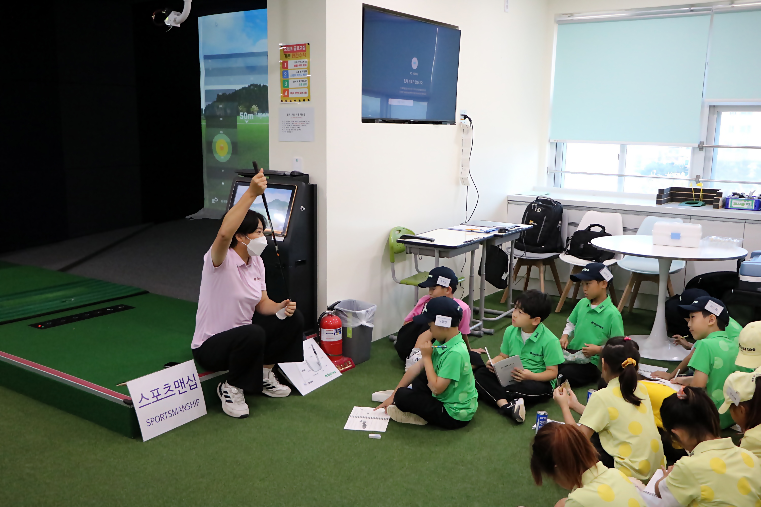 골프클럽의 부위별 명칭과 그 기능에 대해서 배우고 있는 모습