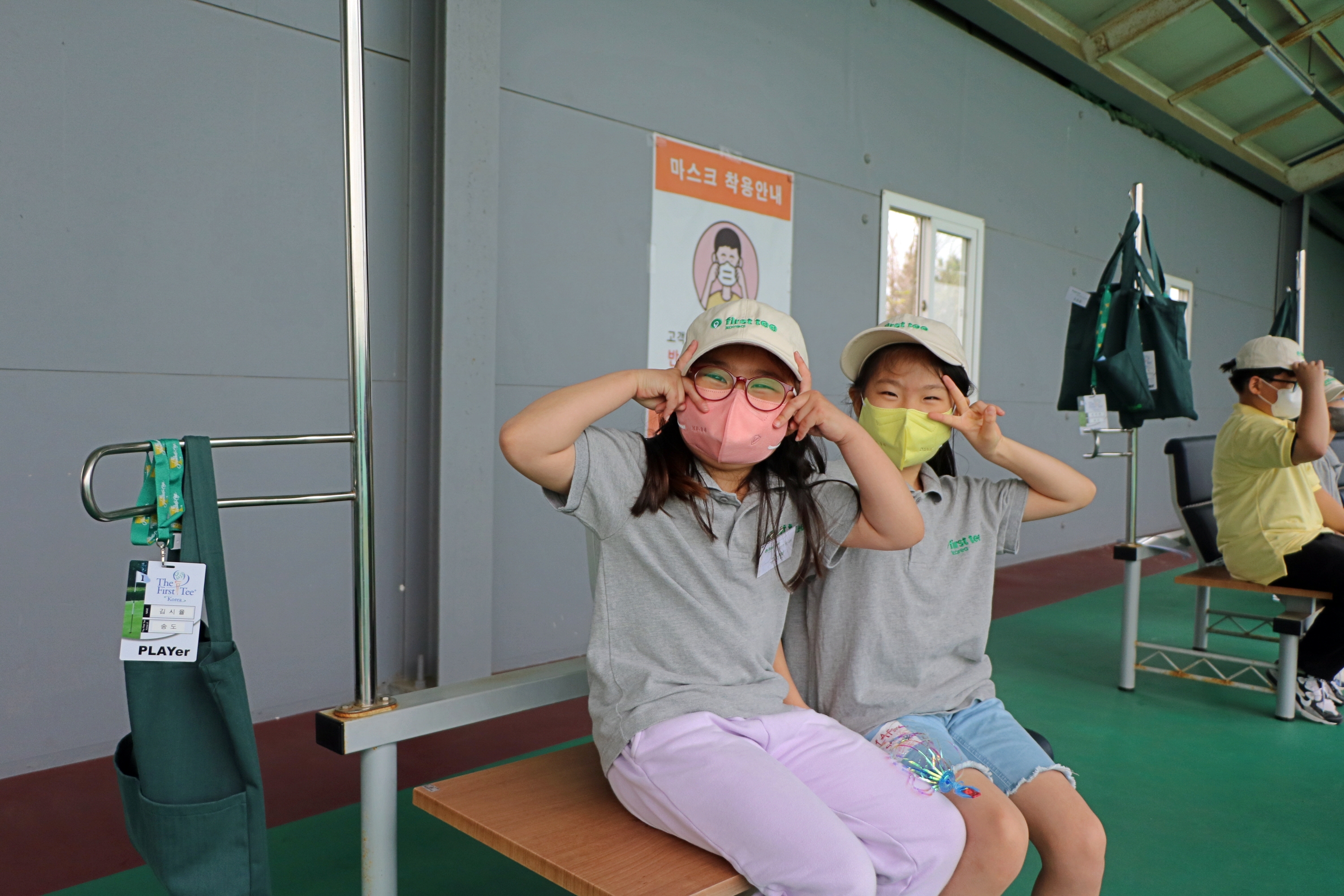 타석에서 벗어났을 땐 개인 안전을 위해 항상 안전구역 내에 있어야 하는 규칙을 준수하고 있는 아이들