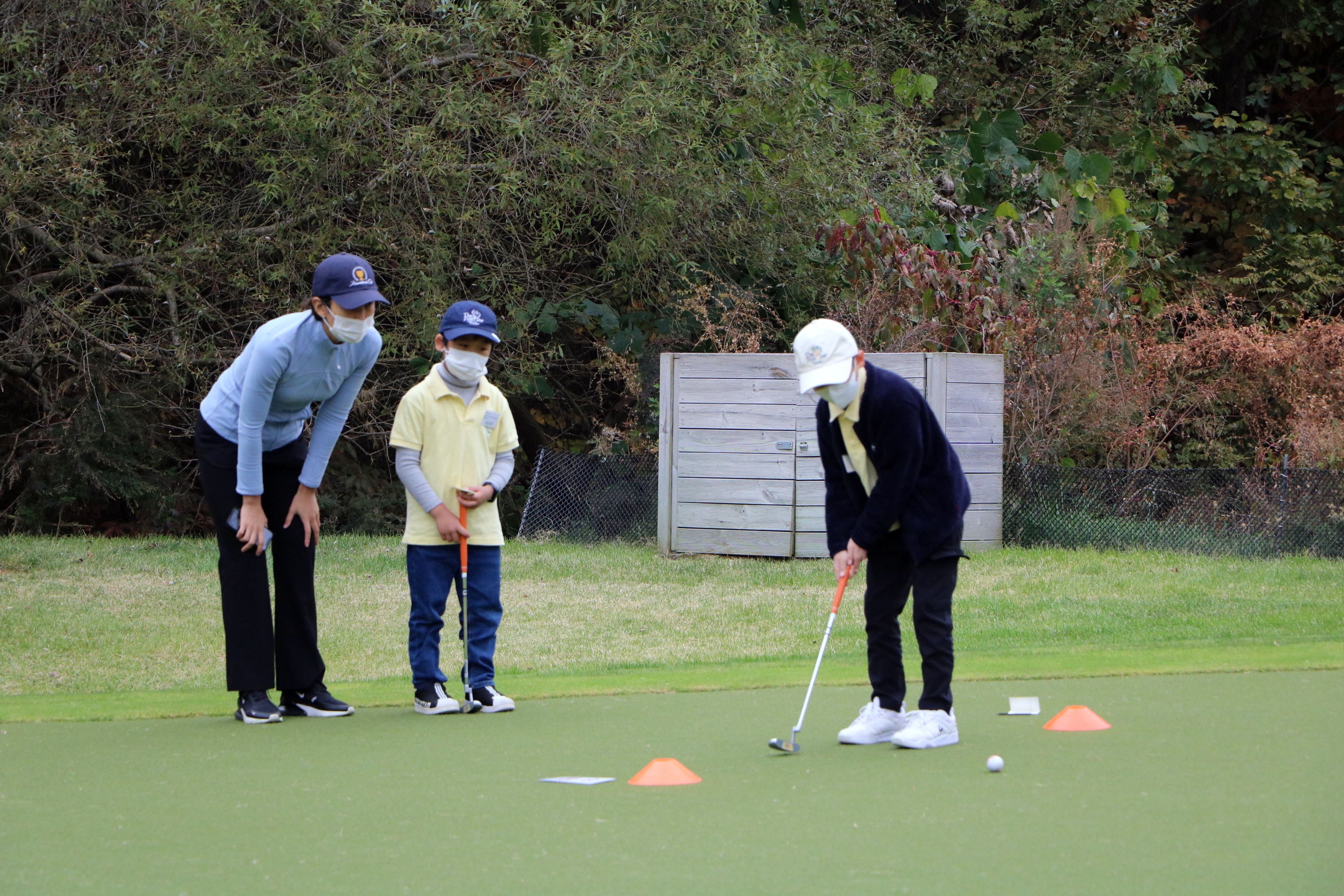 코치님이 지켜보는 가운데 신중하게 퍼트하고 있는 모습