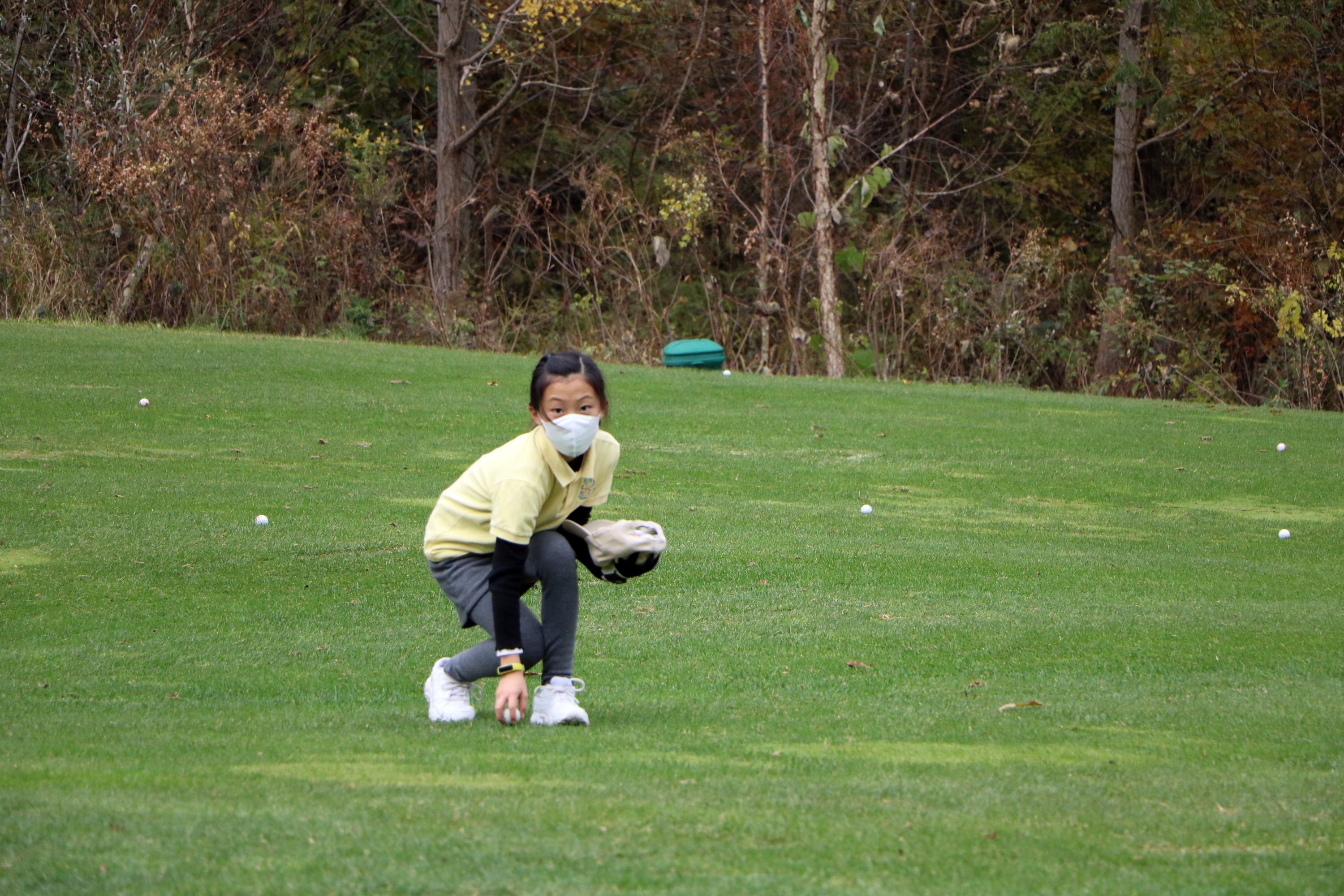 코치님을 도와 자신이 친 볼을 수거하고 있는 모습