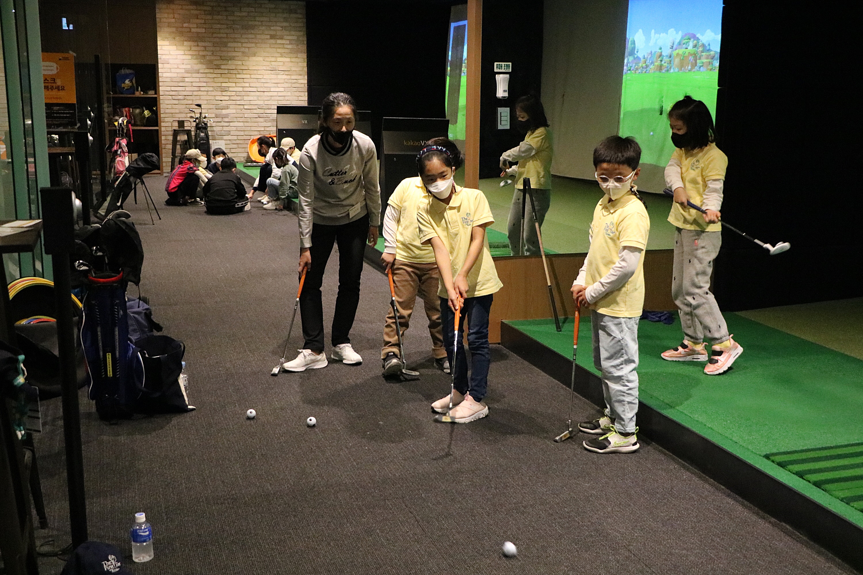 다음주 필드 실습을 앞두고 퍼팅게임을 하고 있는 모습
