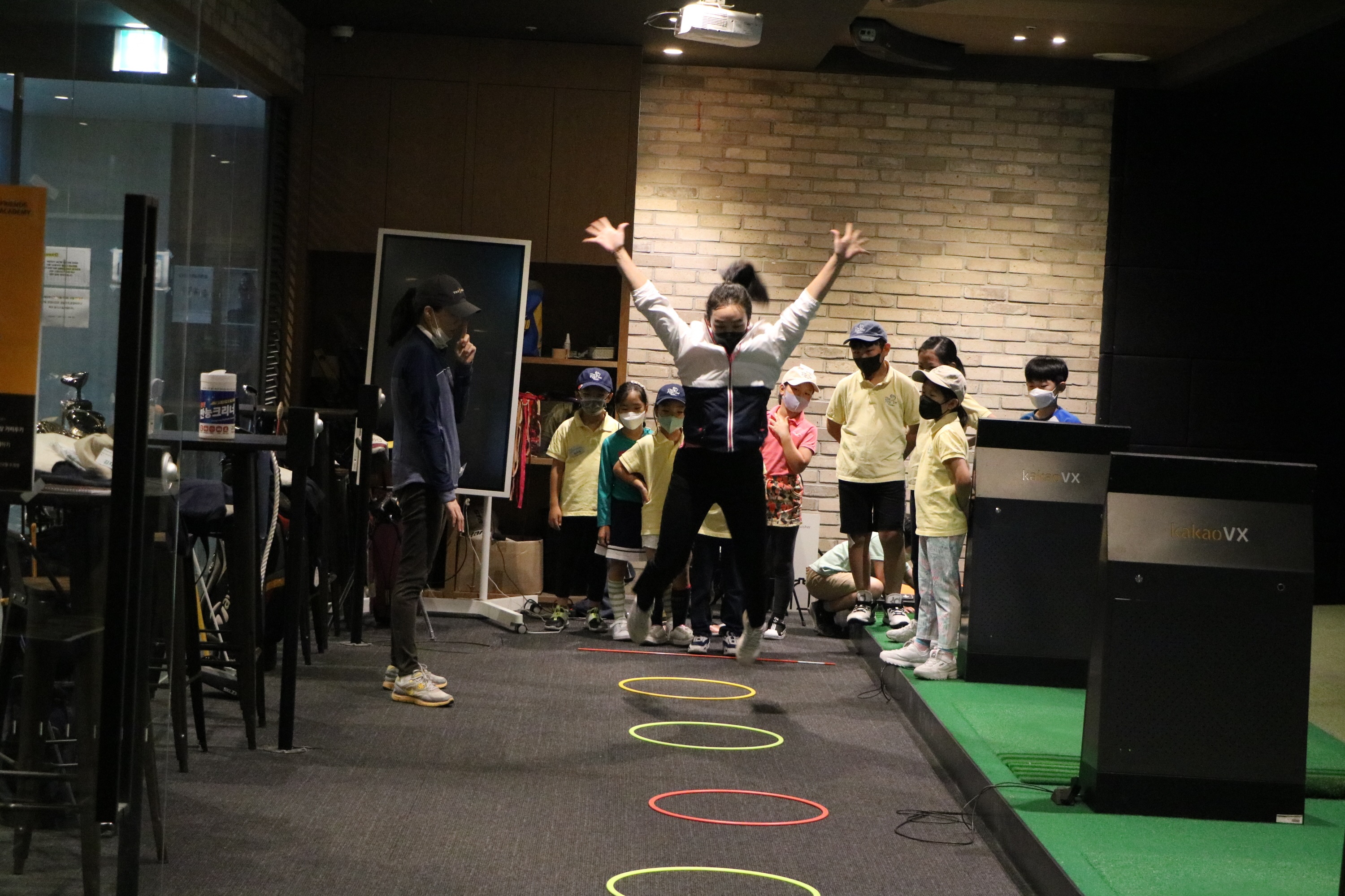 몸풀기로 실시한 개구리 점프에 대해서 시범을 보여주고 있는 모습