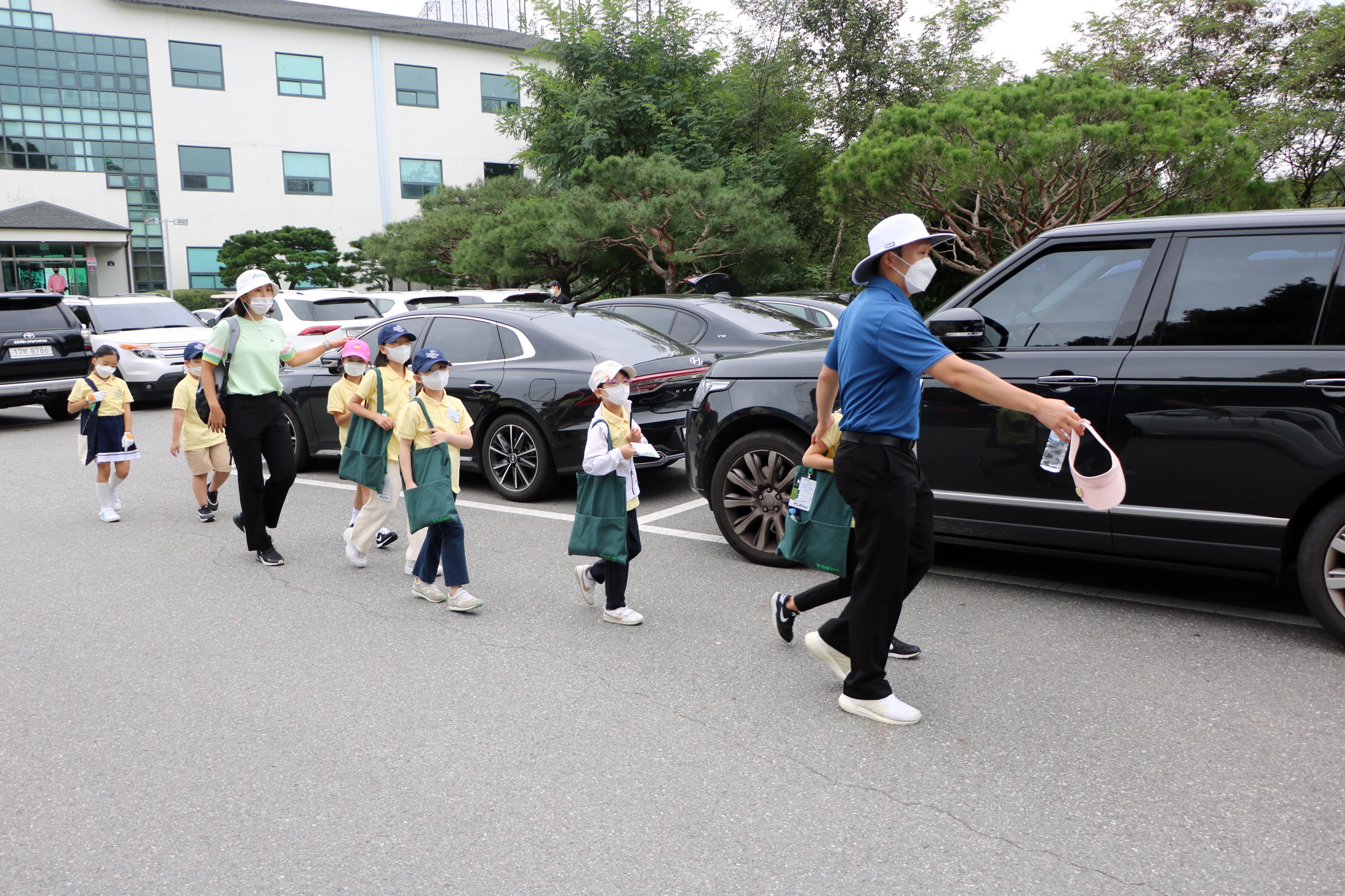 코치님 인솔 하에 질서정연하게 다음 교육장소로 이동하고 있는 모습