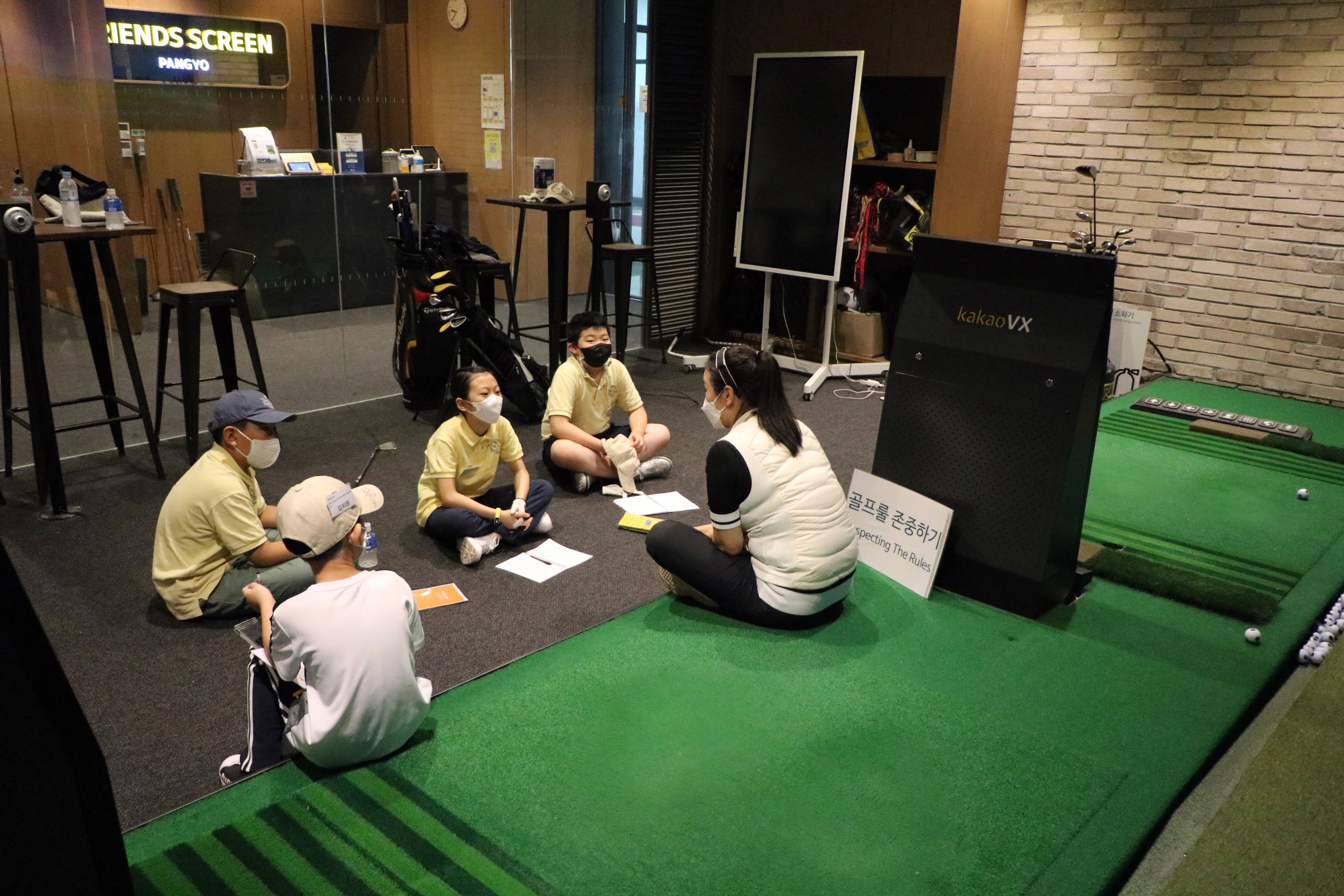 2주차 주제인 골프룰 존중하기에 대해서 가르쳐 주고 있는 모습