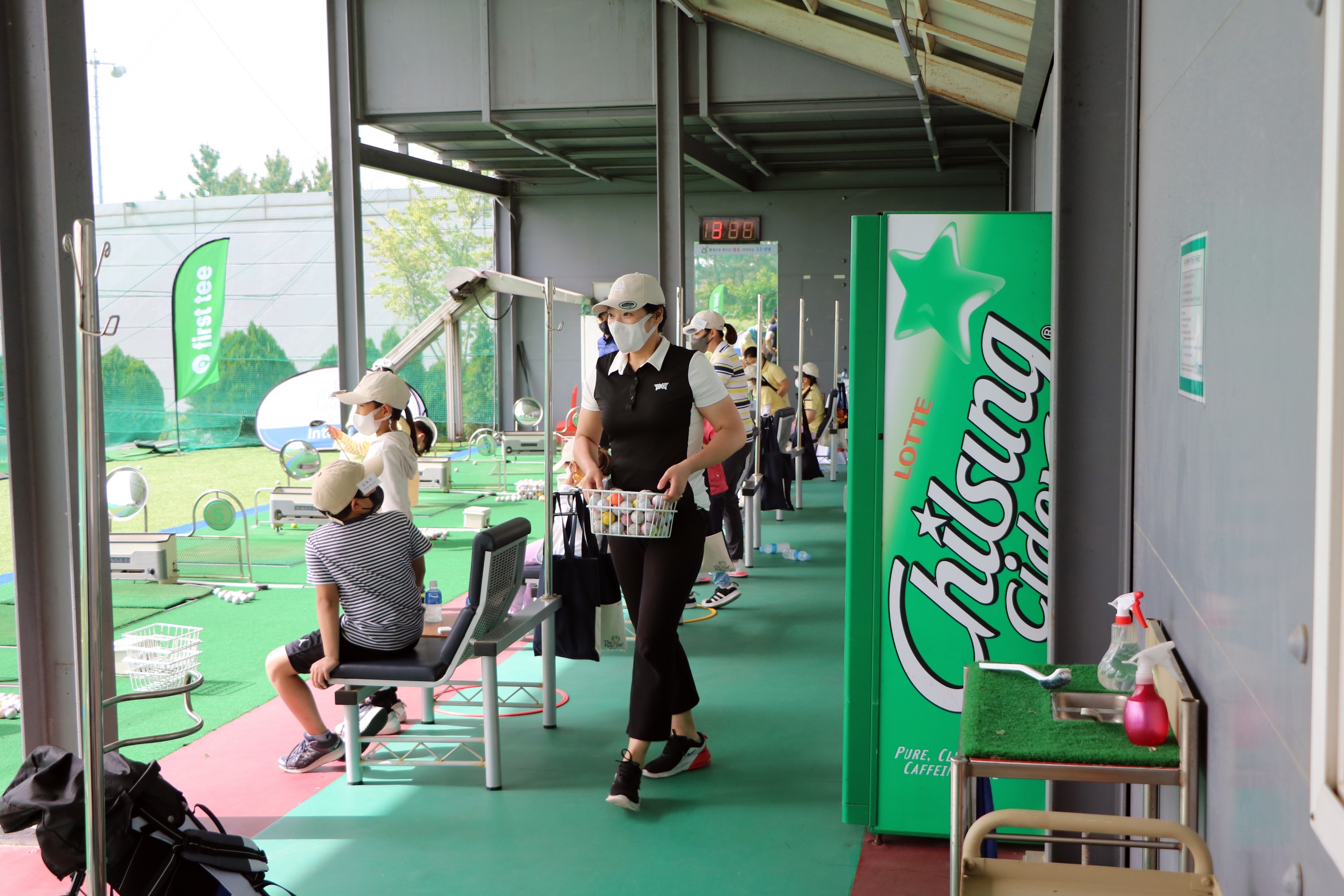 아이들에게 직접 공을 날라다 주시며 열심히 자원봉사 중이신 KLPGA 프로골퍼 출신의 어머니