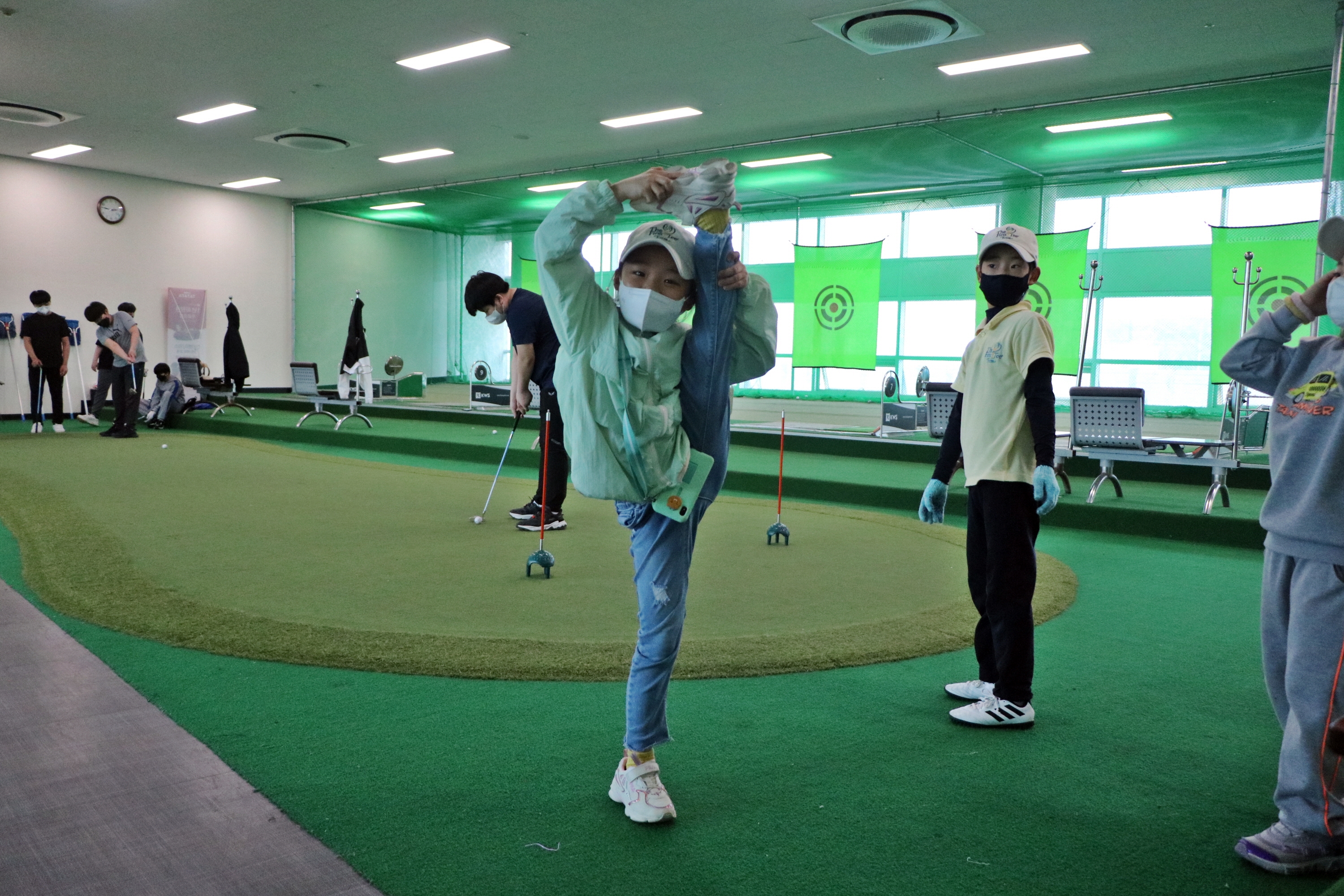 잠깐 쉬는 시간에 리듬체조 시범을 보여주고 있는 교육생