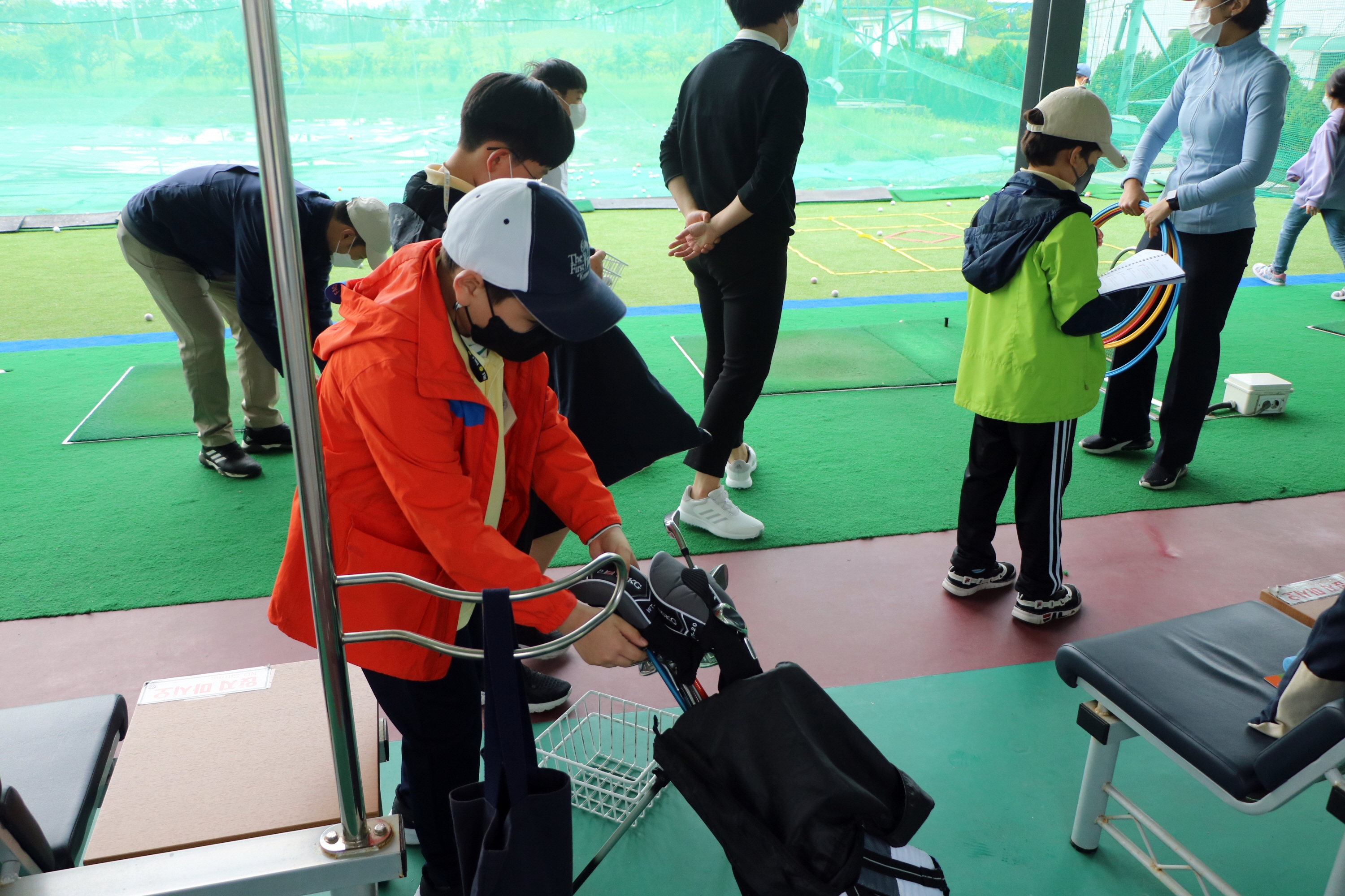 본인들이 사용한 클럽을 제자리에 가져다 놓고 일일이 헤드커버까지 씌우며 정리하고 있는 모습