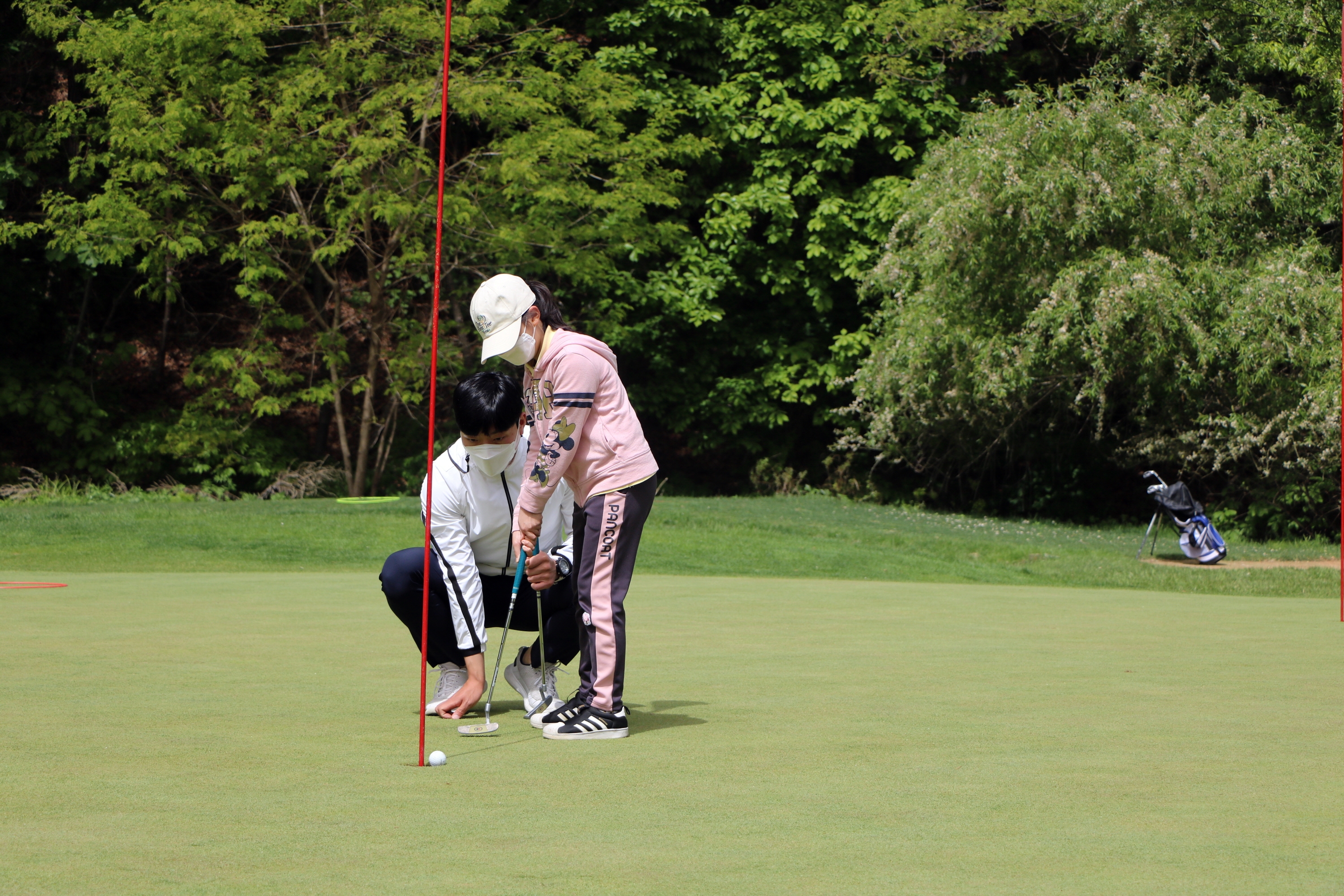 코치님의 지도로 볼이 정확하게 홀방향으로 굴러가며 홀인 되려는 순간
