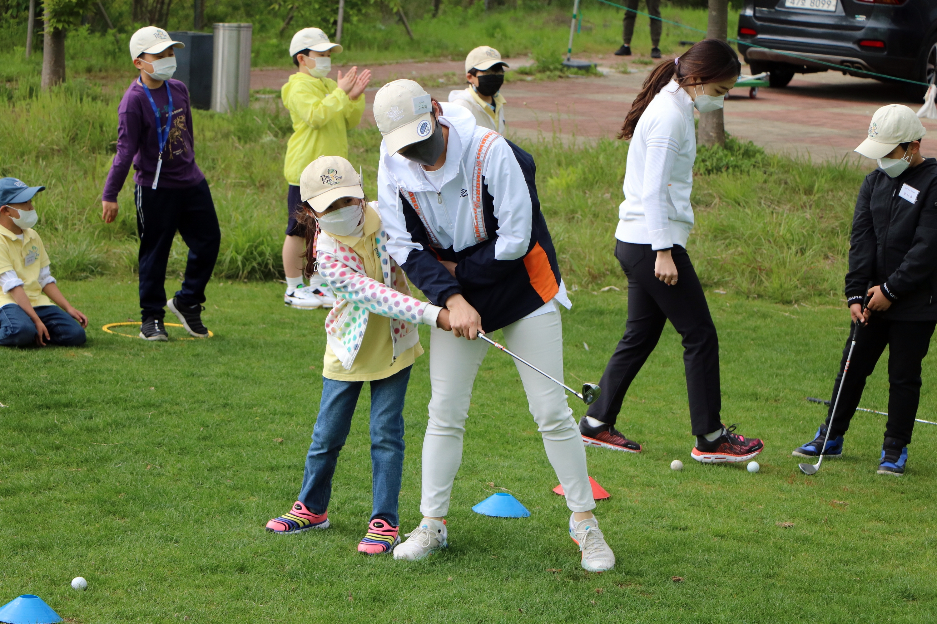 Y TO Y 스윙을 할 때 어드레스 때 취한 Y자 모양이 무너져서는 안된다는 것을 가르쳐 주고 있는 모습