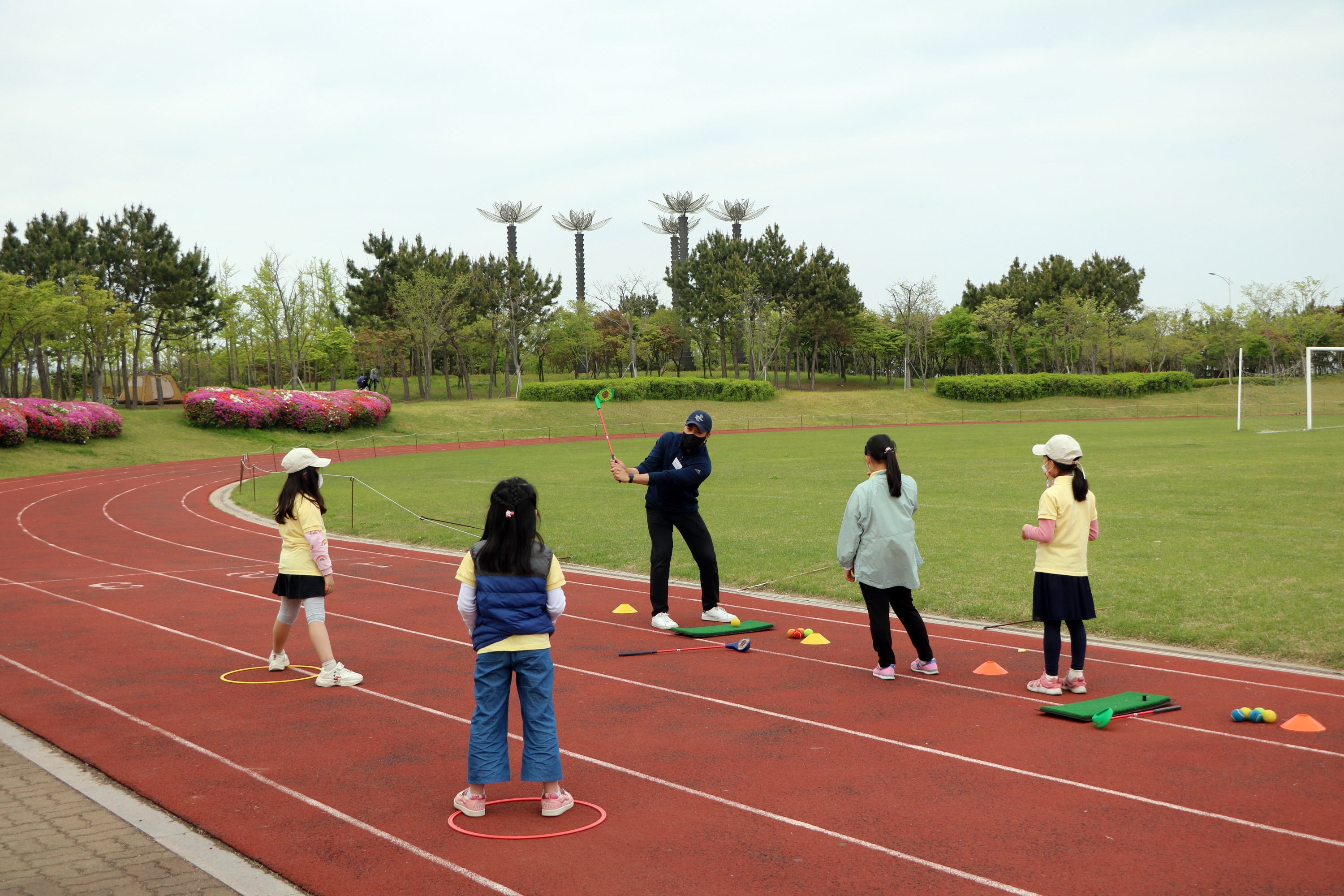 L TO L 스윙으로 목표한 거리까지 정확하게 공을 보낼 수 있는 법에 대해서 설명해 주고 있는 모습