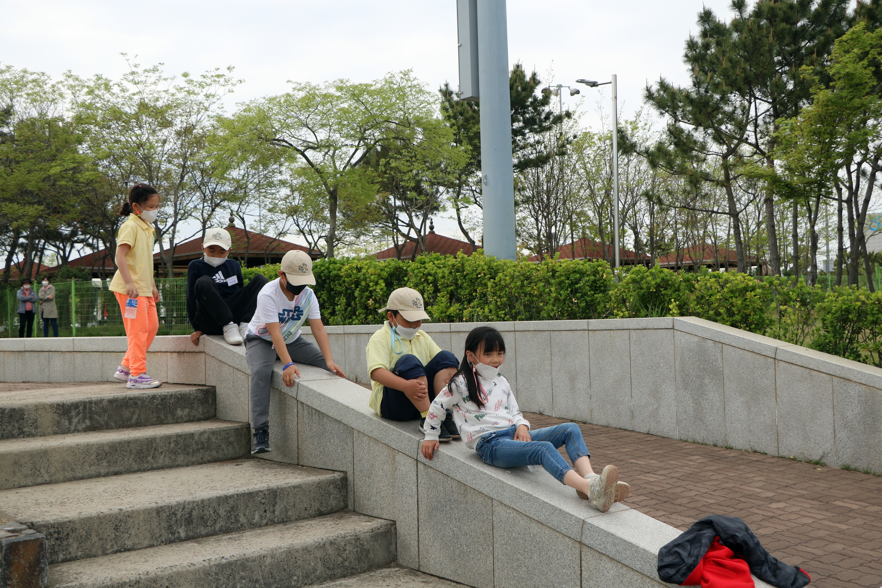 잠시 쉬는 시간을 이용해 미끄럼틀 놀이를 하며 즐거워 하고 있는 아이들