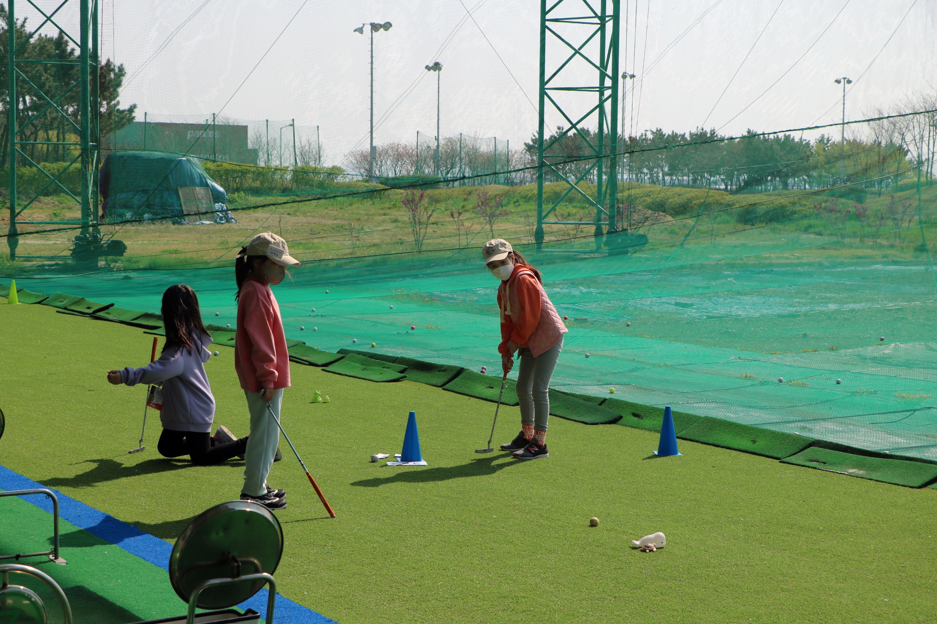 한타 한타 신중하게 퍼팅을 하고 있는 아이들 모습