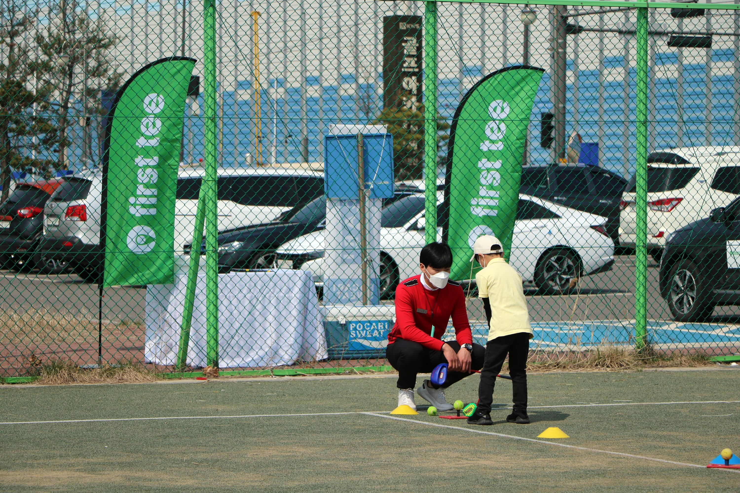 교육생 개인별로 실력에 맞게 맞춤형 골프 레슨을 해주고 있는 코치들