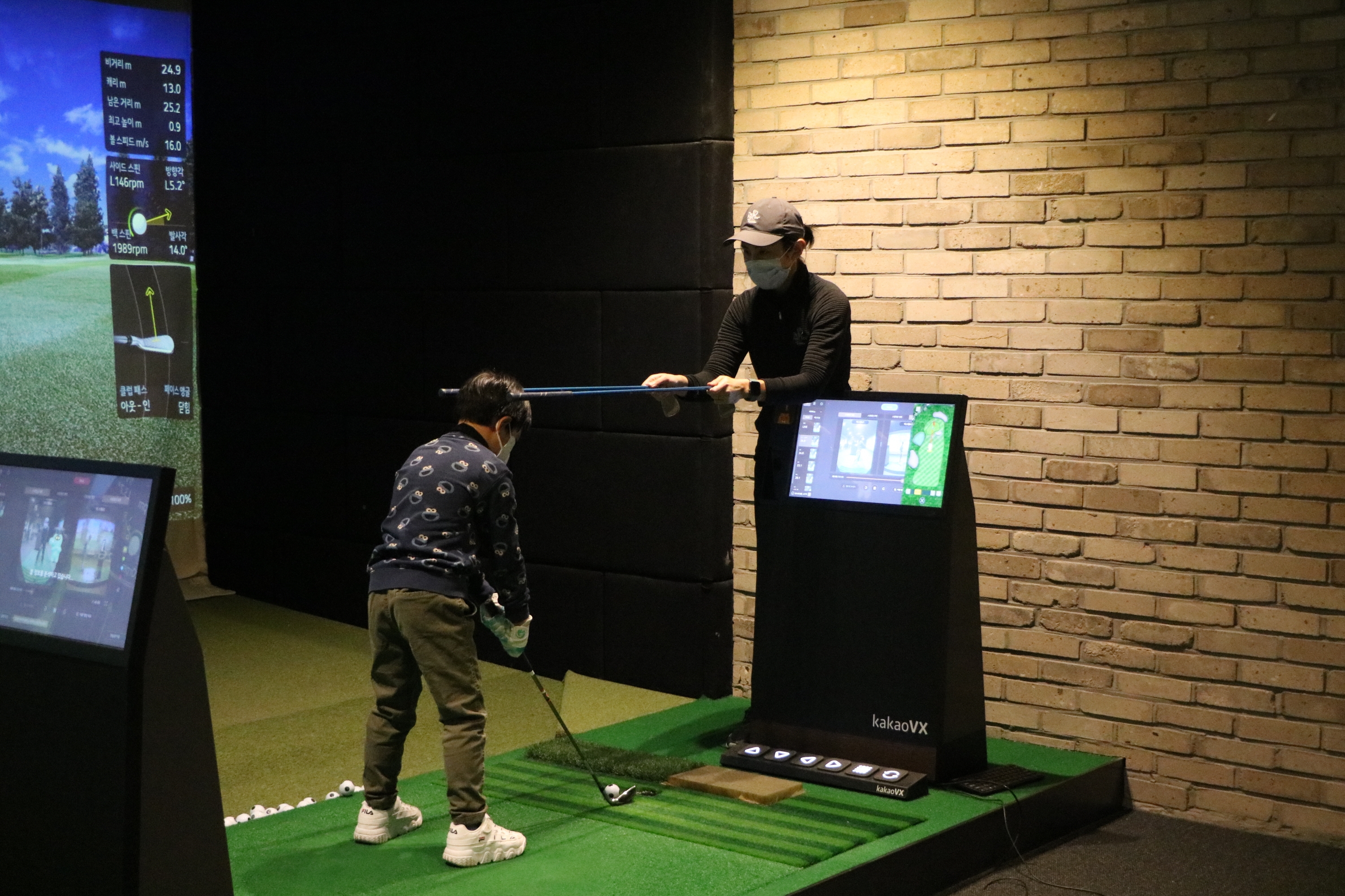 헤드업을 방지하기 위해 과도한 머리 움직임을 교정해 주고 있는 모습