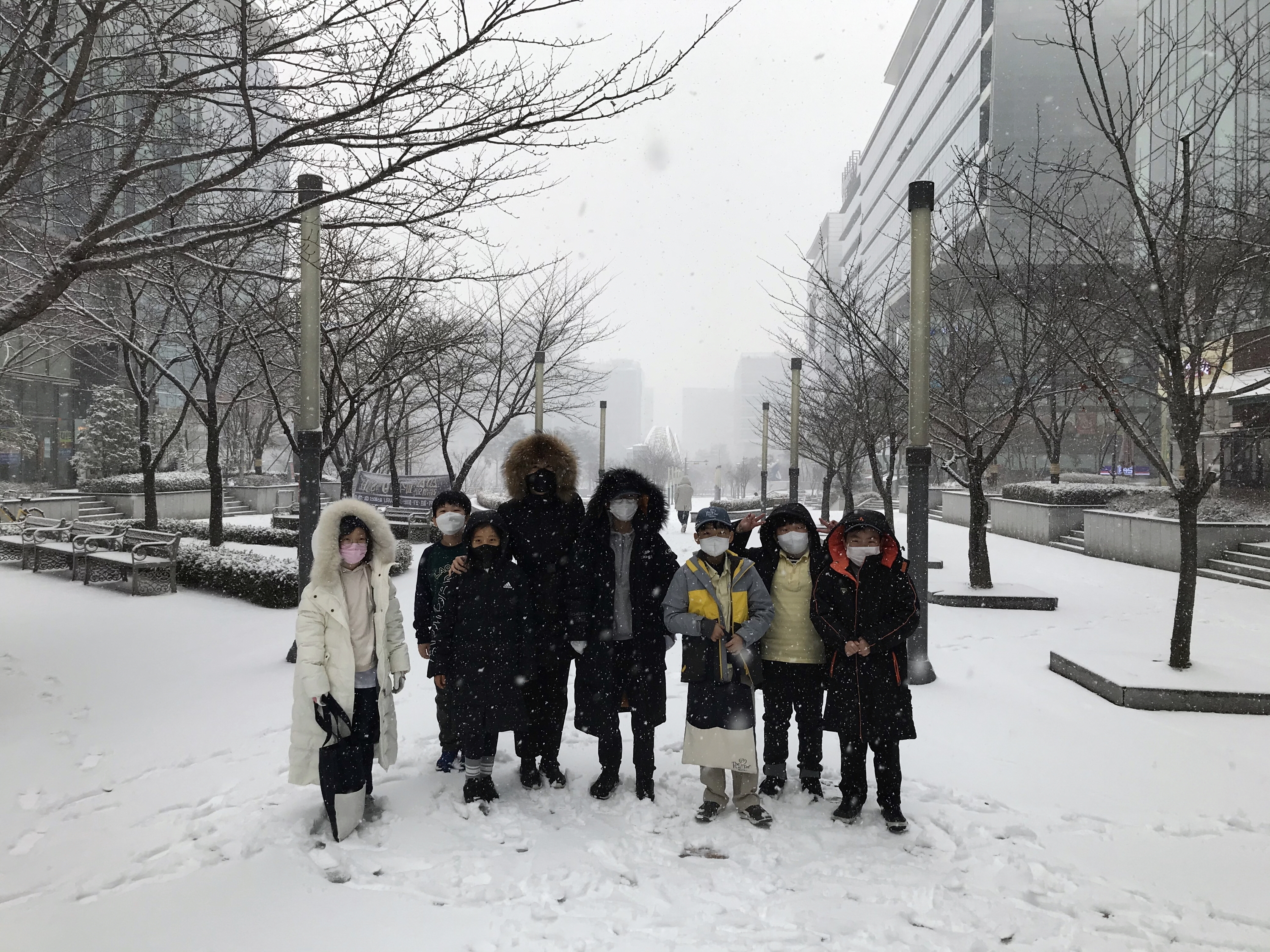 교육을 마친 후 펄펄 내리는 함박눈을 맞으며 코치님과 즐겁게 기념사진 한컷!