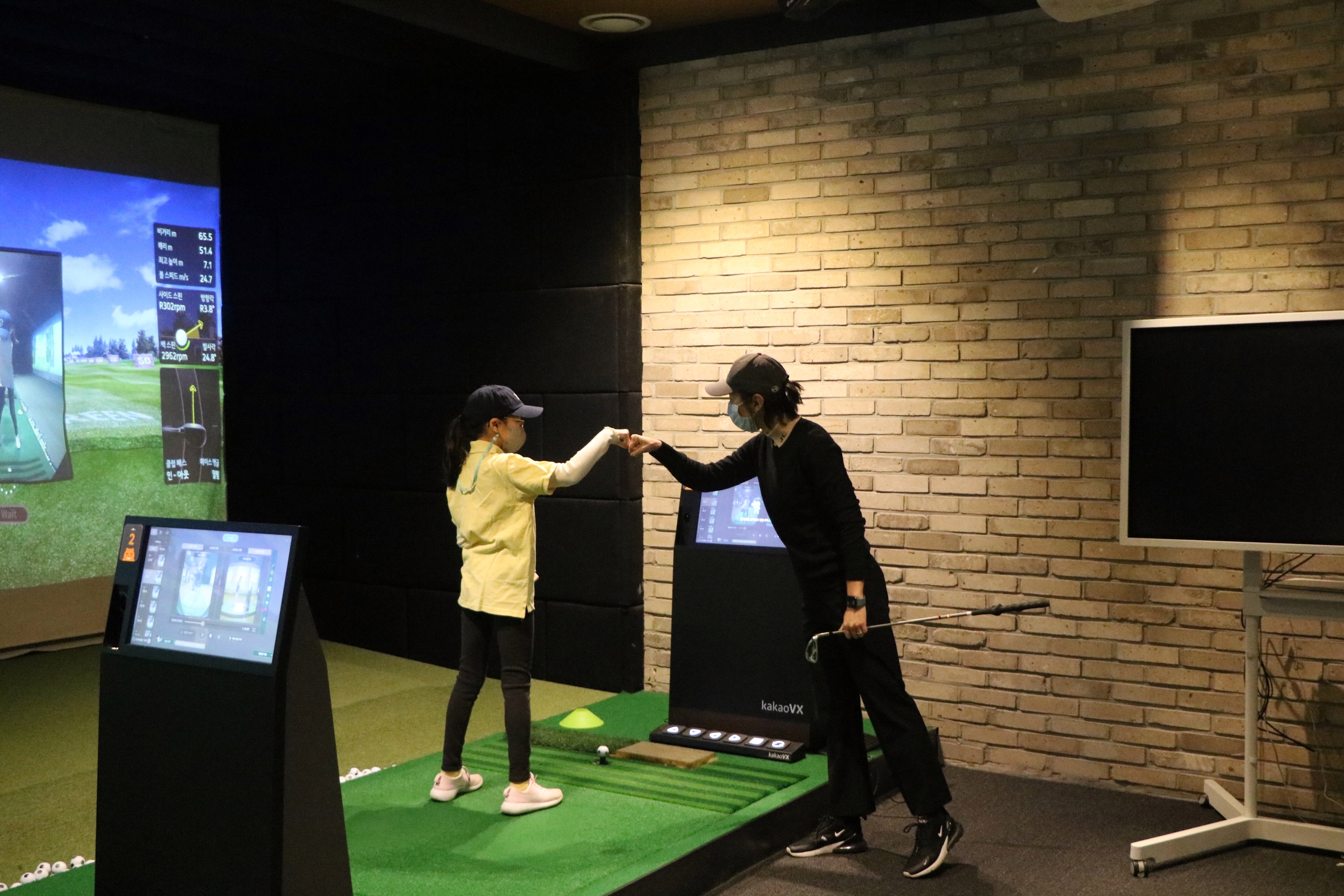 미션을 달성한 교육생과 주먹악수를 하며 격려해주고 있는 모습