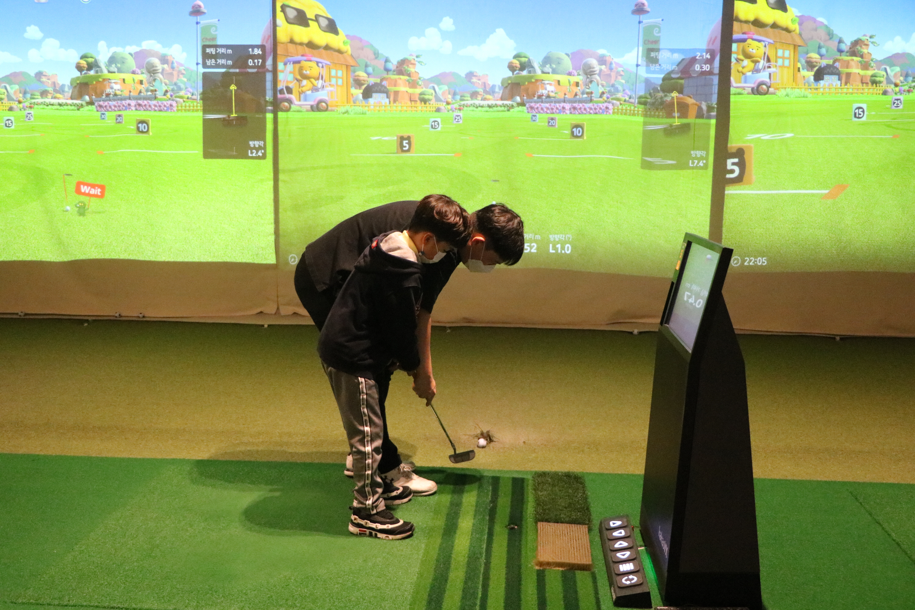 단거리 퍼트를 하는 요령에 대해서 설명해 주고 있는 모습