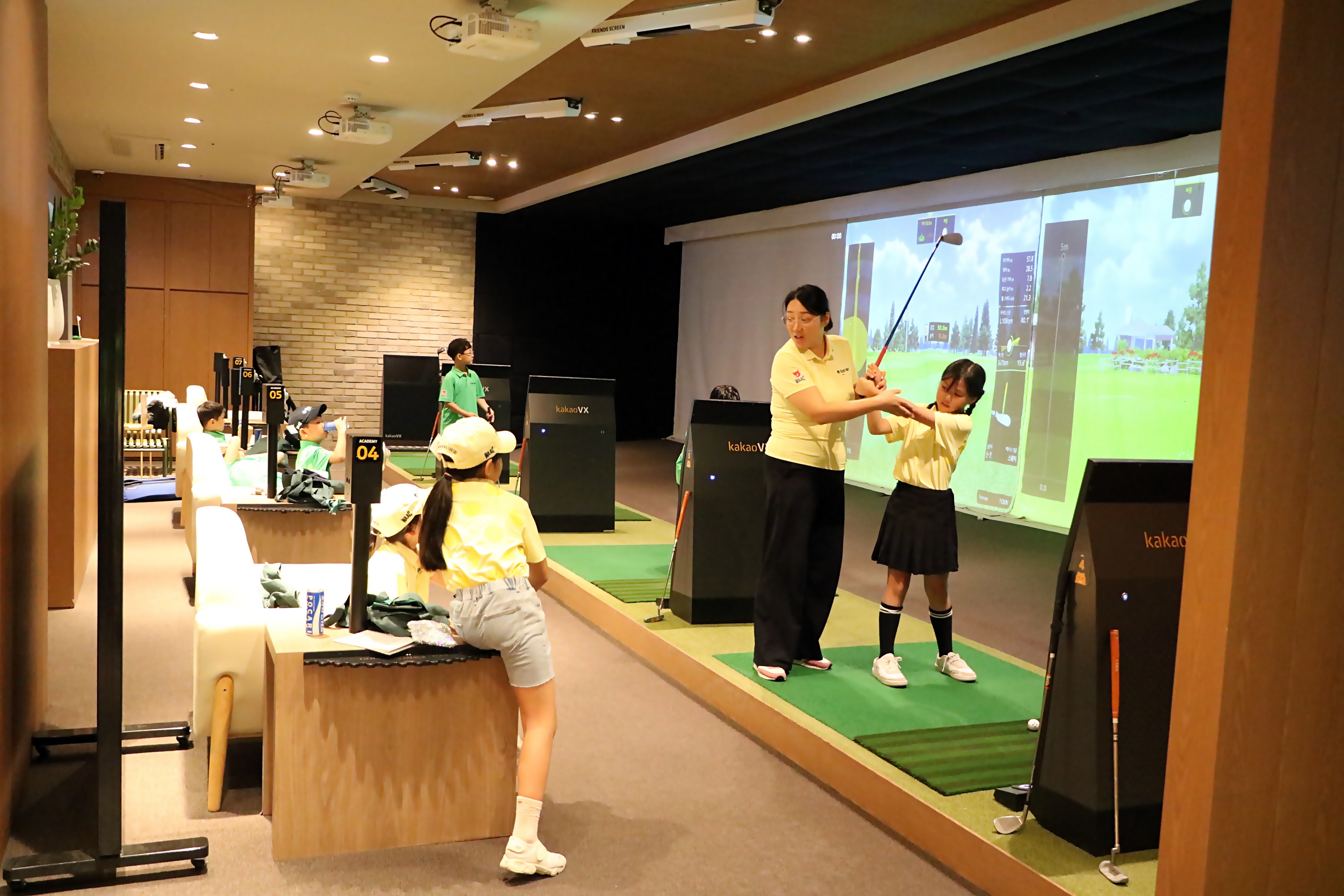구분동작으로 스윙시 각 동작마다 어떻게 해야 하는지 설명해 주고 있는 모습