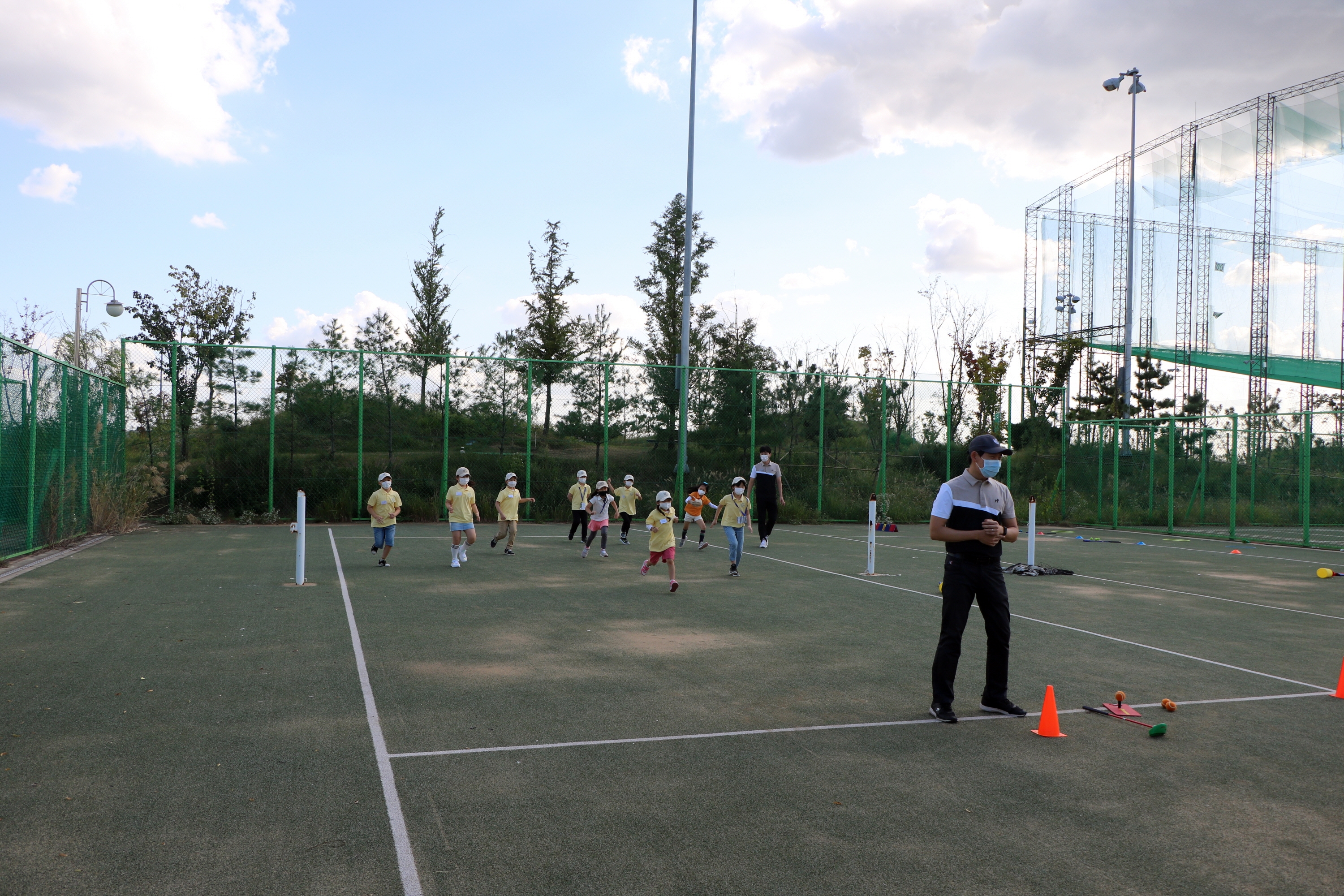 코로나 19 예방 차원에서 몸 터치를 최소화 하기 위해 '에어 무궁화꽃이 피었습니다'를 하면서 즐거운 시간을 보내고 있는 모습