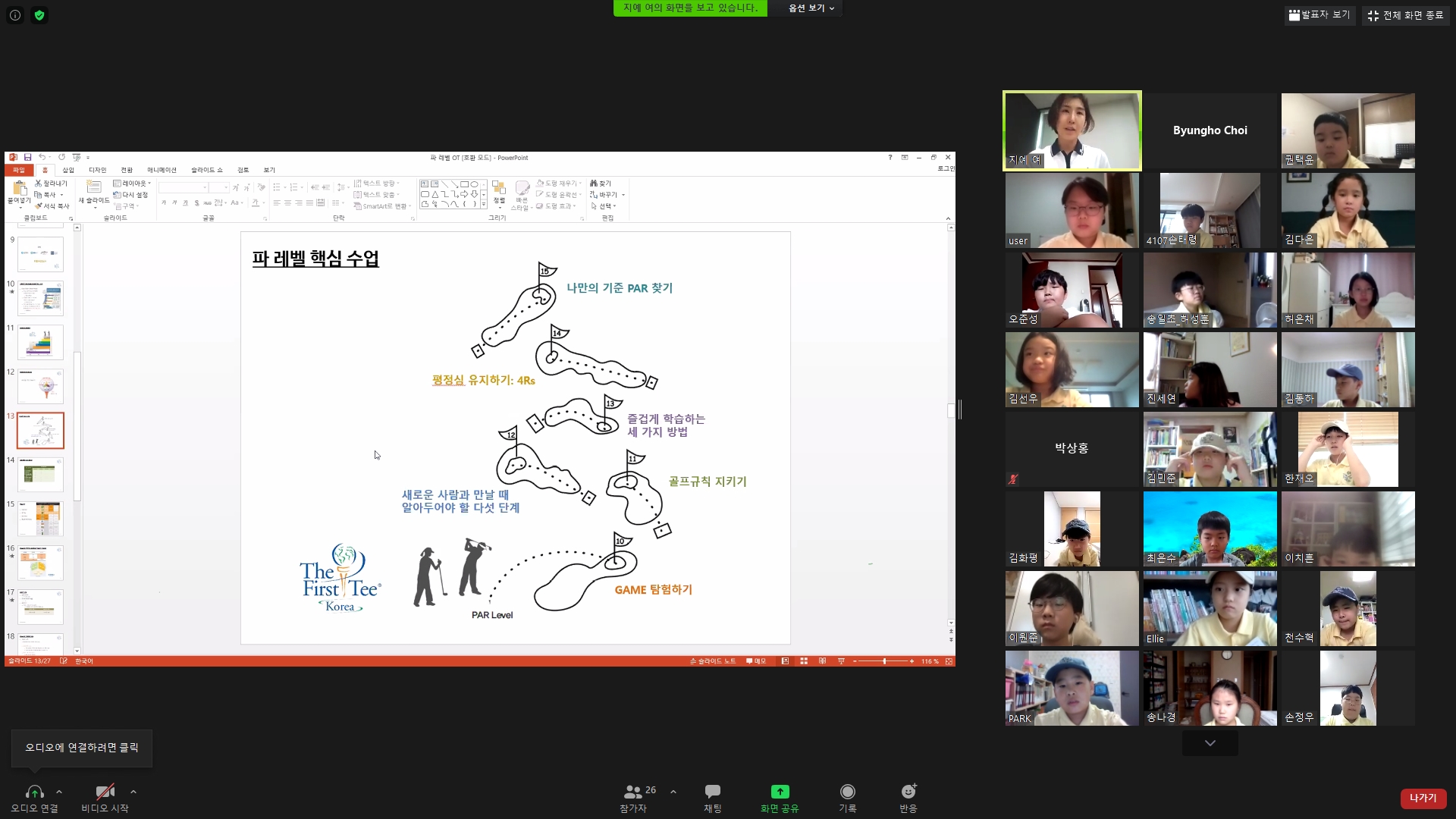 앞으로 10주간 진행될 파레벨의 핵심에 대해서 설명해 주고 있는 모습