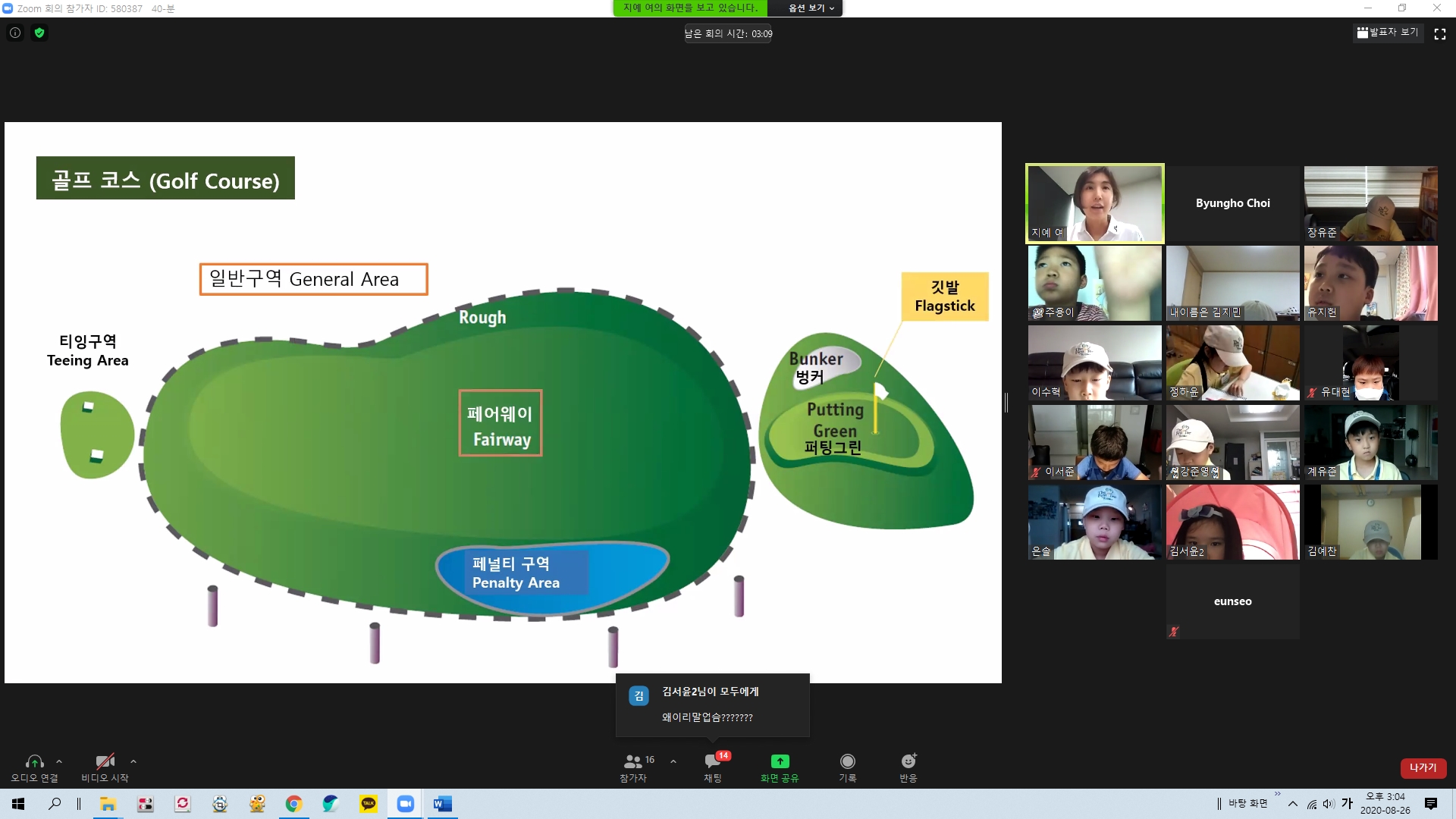 골프코스의 명칭에 대해서 설명해 주고 있는 모습