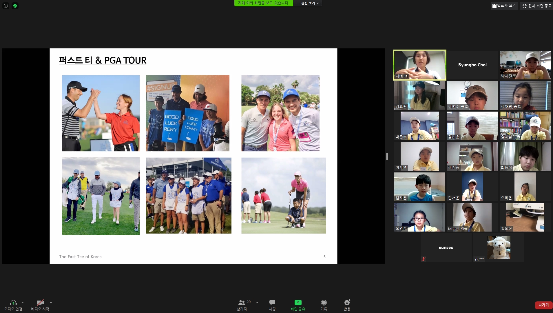 퍼스트 티와 관련이 많은 PGA 투어에 대해 소개해 주고 있는 모습
