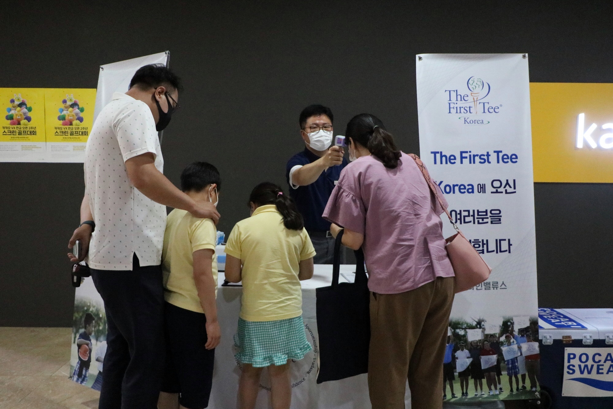 코로나 19 감염예방을 위해 교육생 및 모든 방문자의 발열 체크를 하고 있는 모습