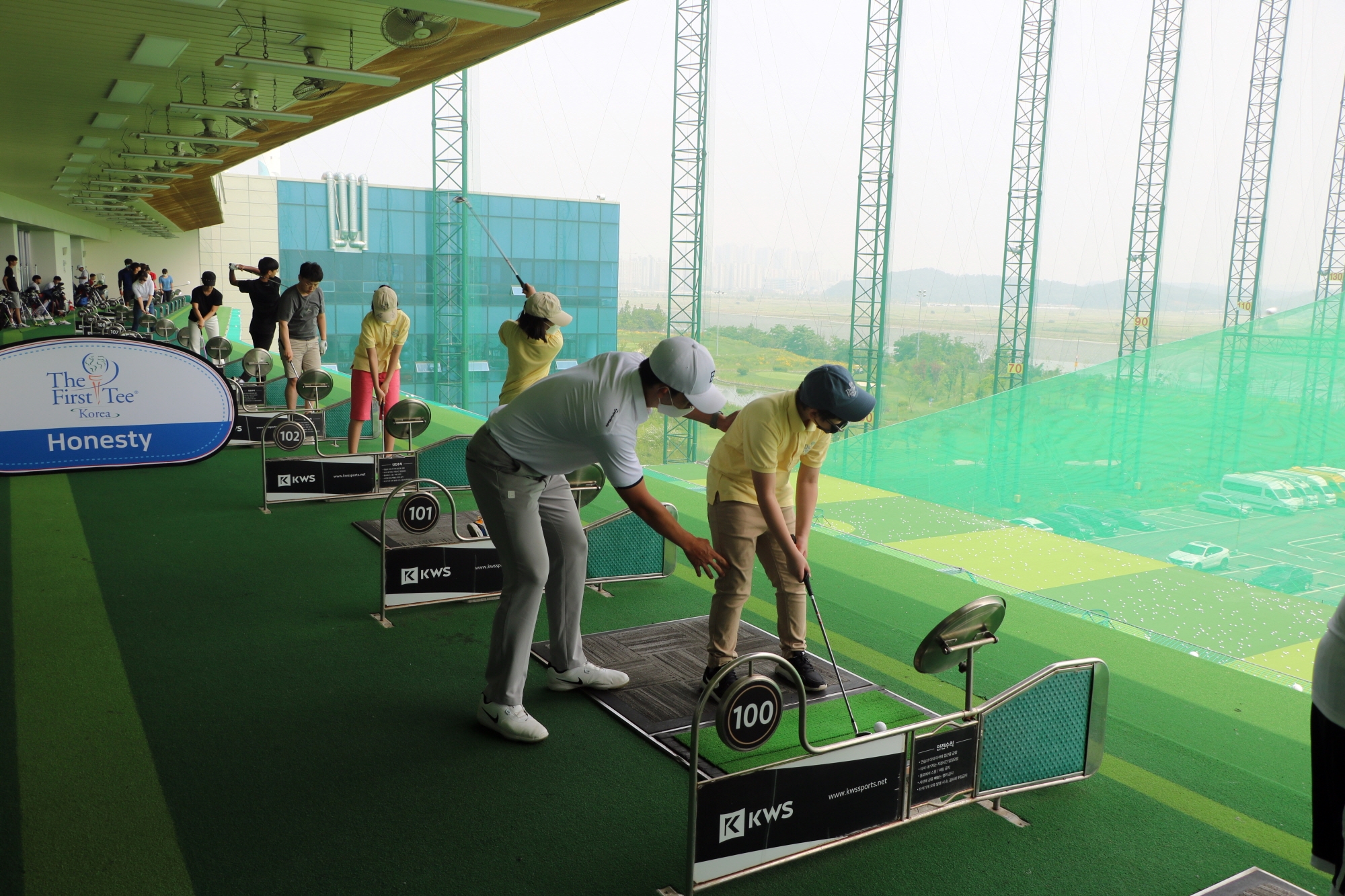 김비오 프로님의 1:1레슨을 받으며 스윙 오류를 교정받고 있는 모습