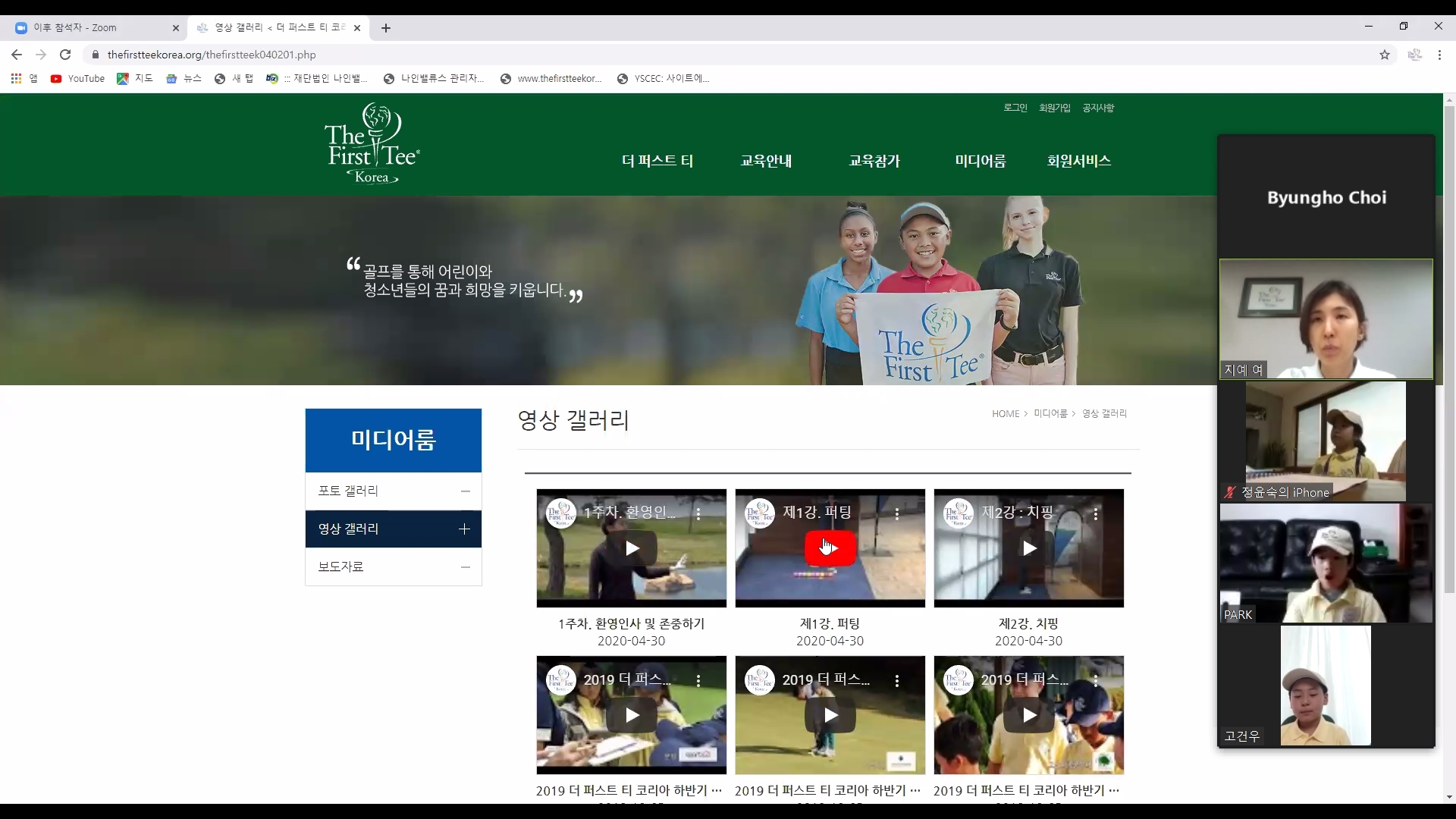 홈페이지에 올려놓은 교육영상 자료를 수업시간 전에 보고 오도록 안내하고 있는 모습