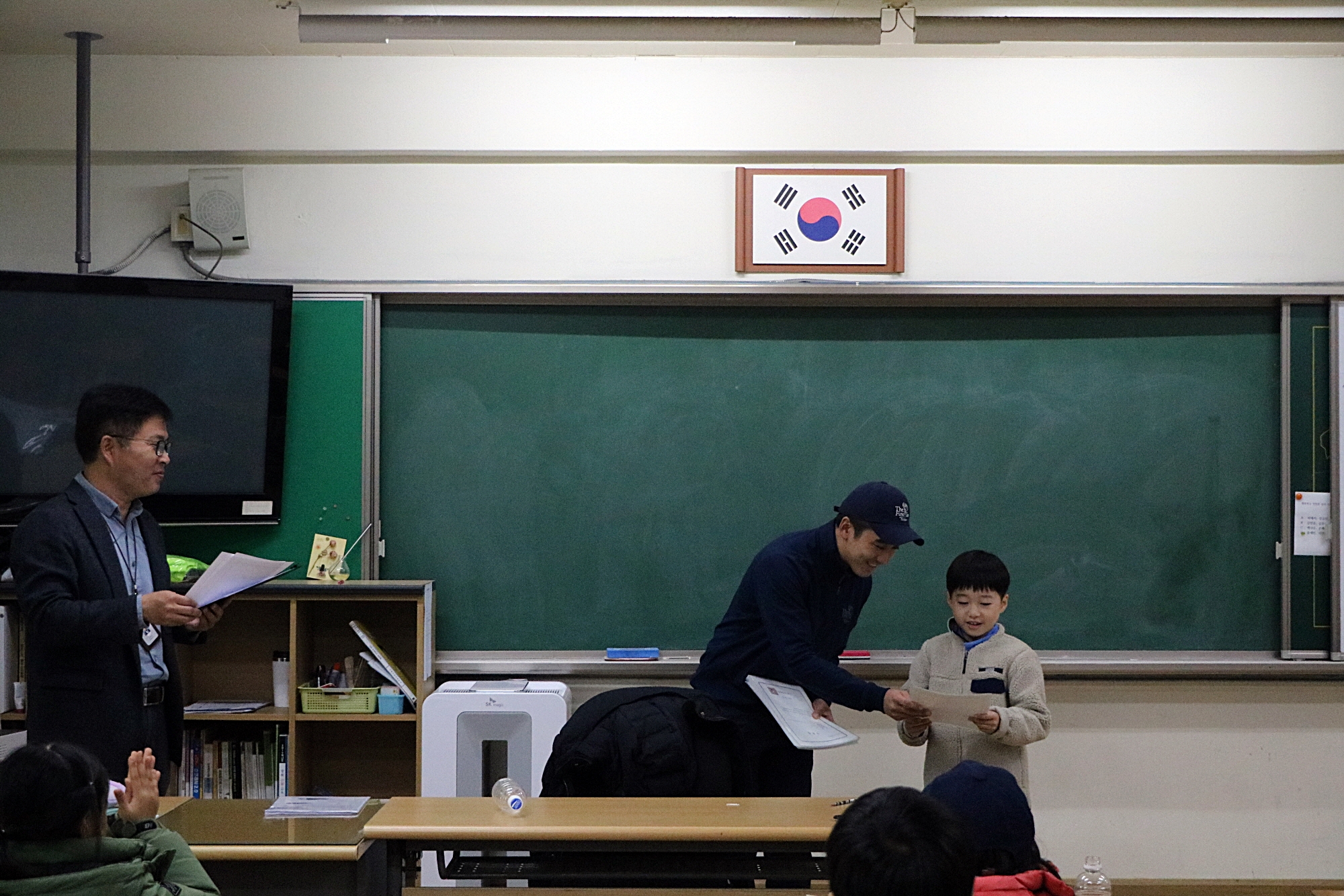 한명, 한명 자신의 이름이 호명될 때마다 앞으로 나와 코치님께 수료증을 받고 있는 모습